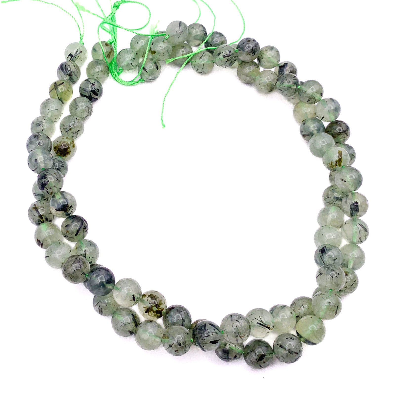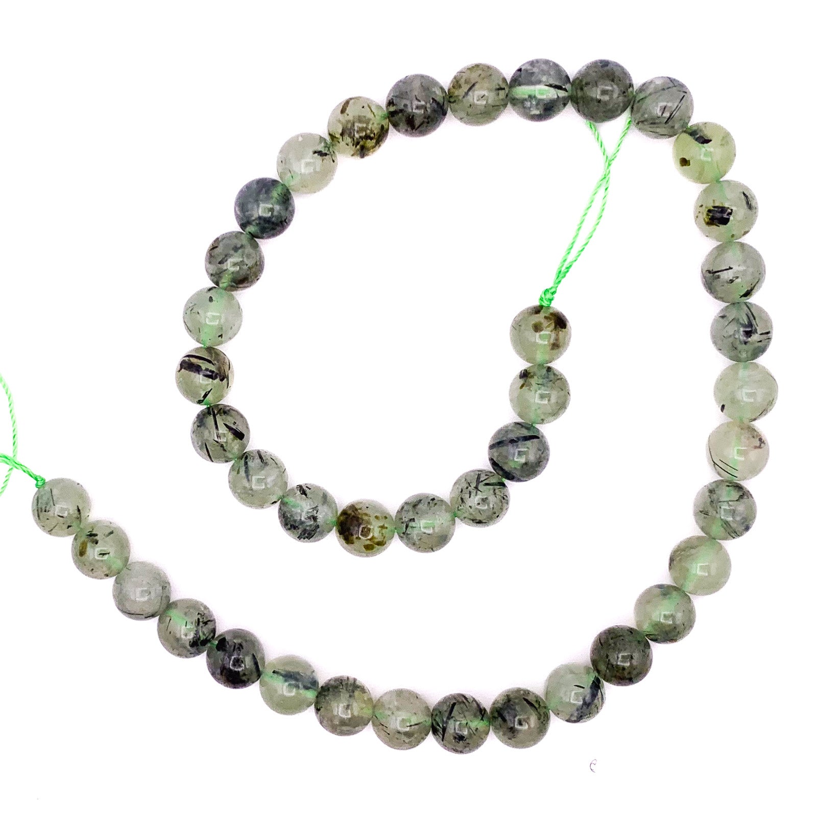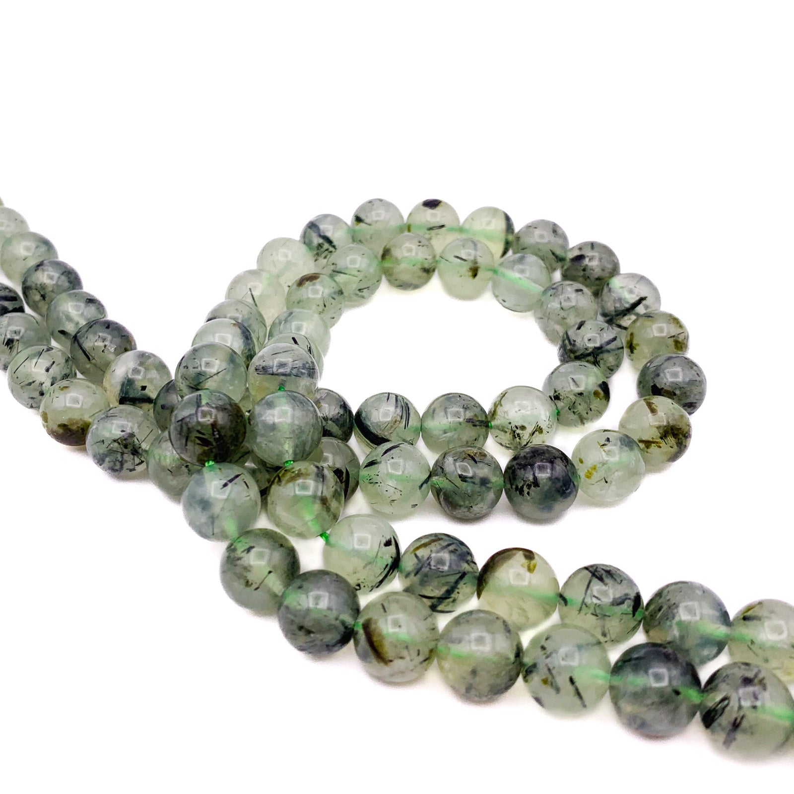 Quartz Rutilated Green 10mm Smooth Rounds Bead Strand