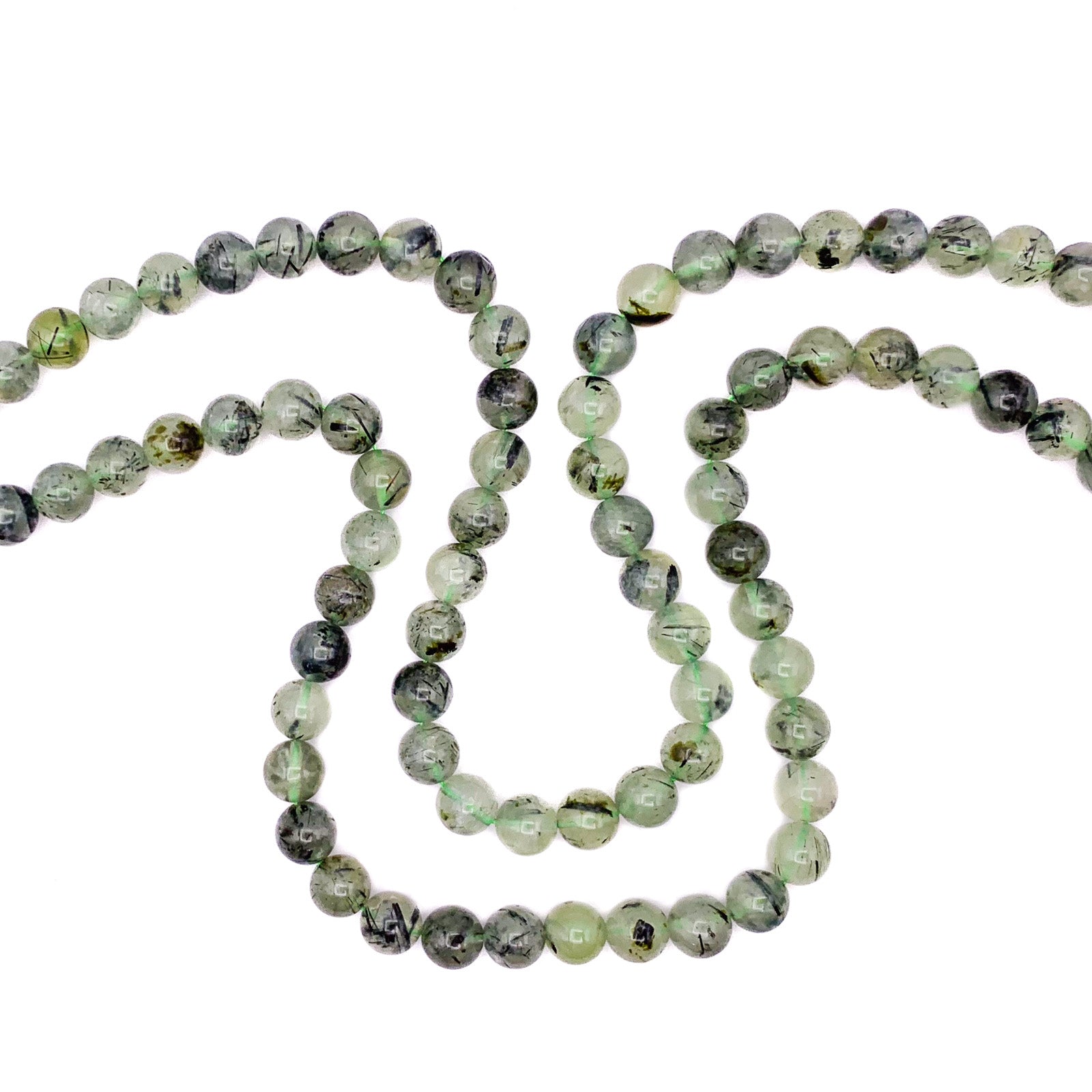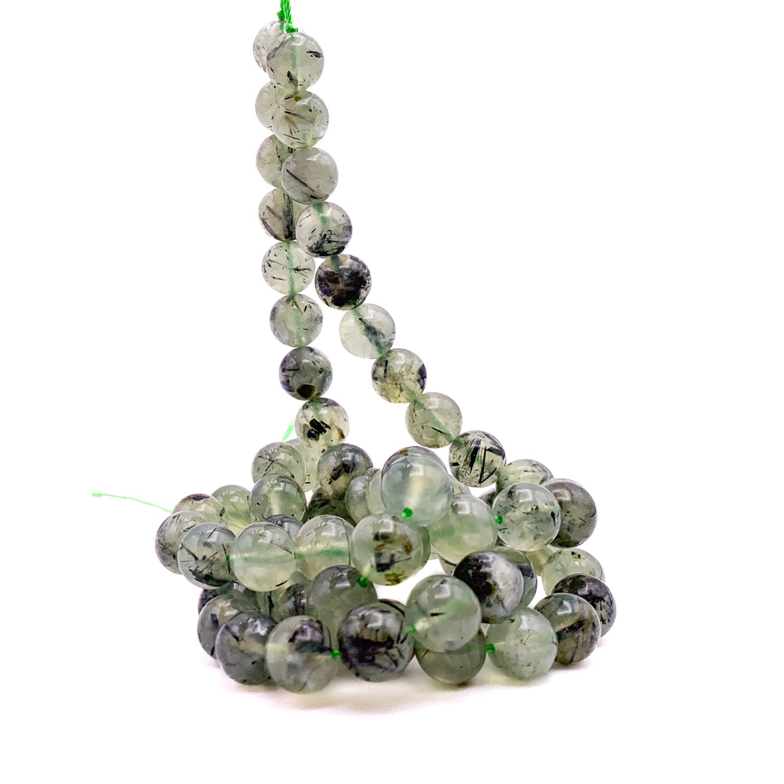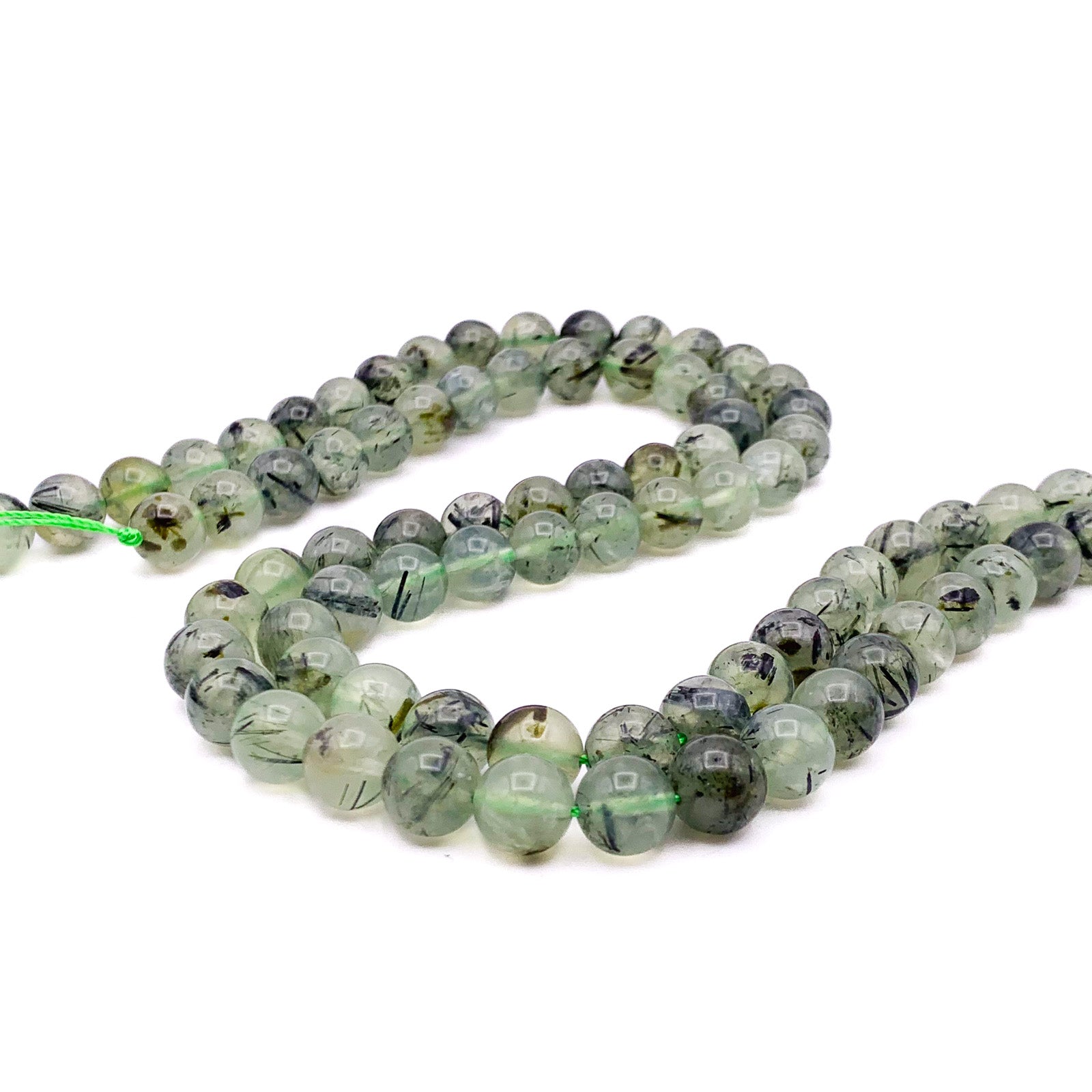 Quartz Rutilated Green 10mm Smooth Rounds Bead Strand