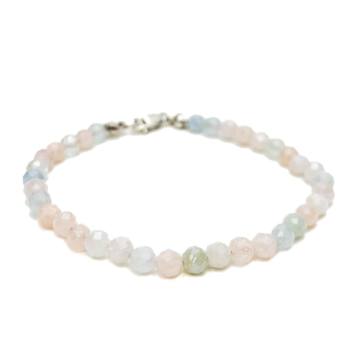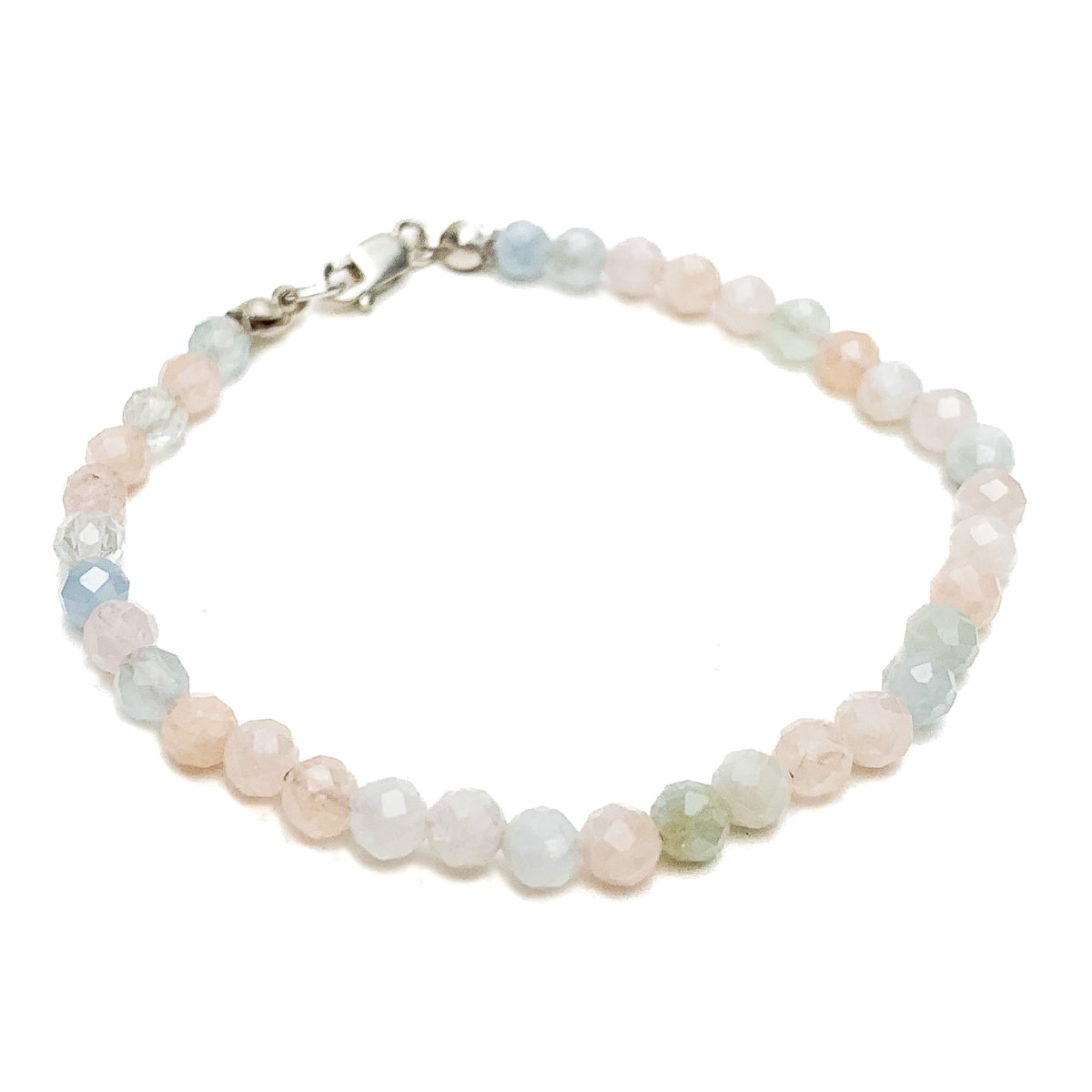• Aquamarine / Beryl Faceted 4mm Bracelet With Sterling Silver Lobster Clasp