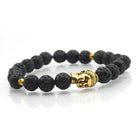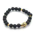 Lavastone and Gold Vermeil Beads Elastic Bracelet with Gold Plated Buddha Head