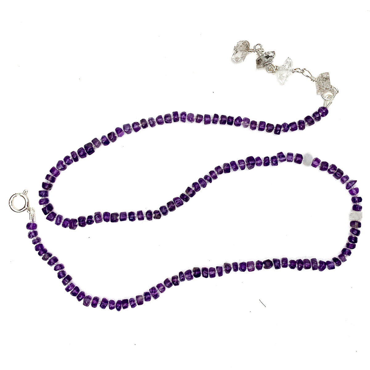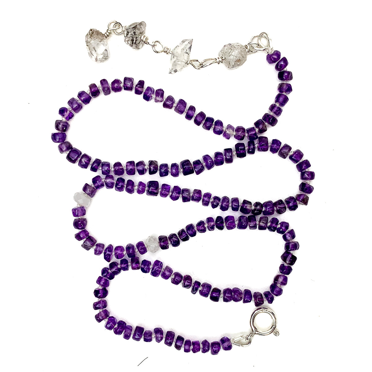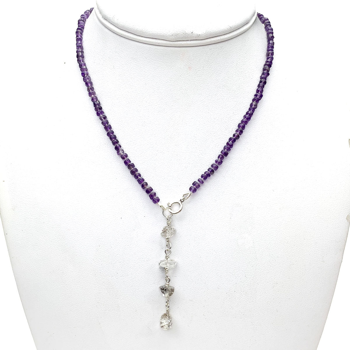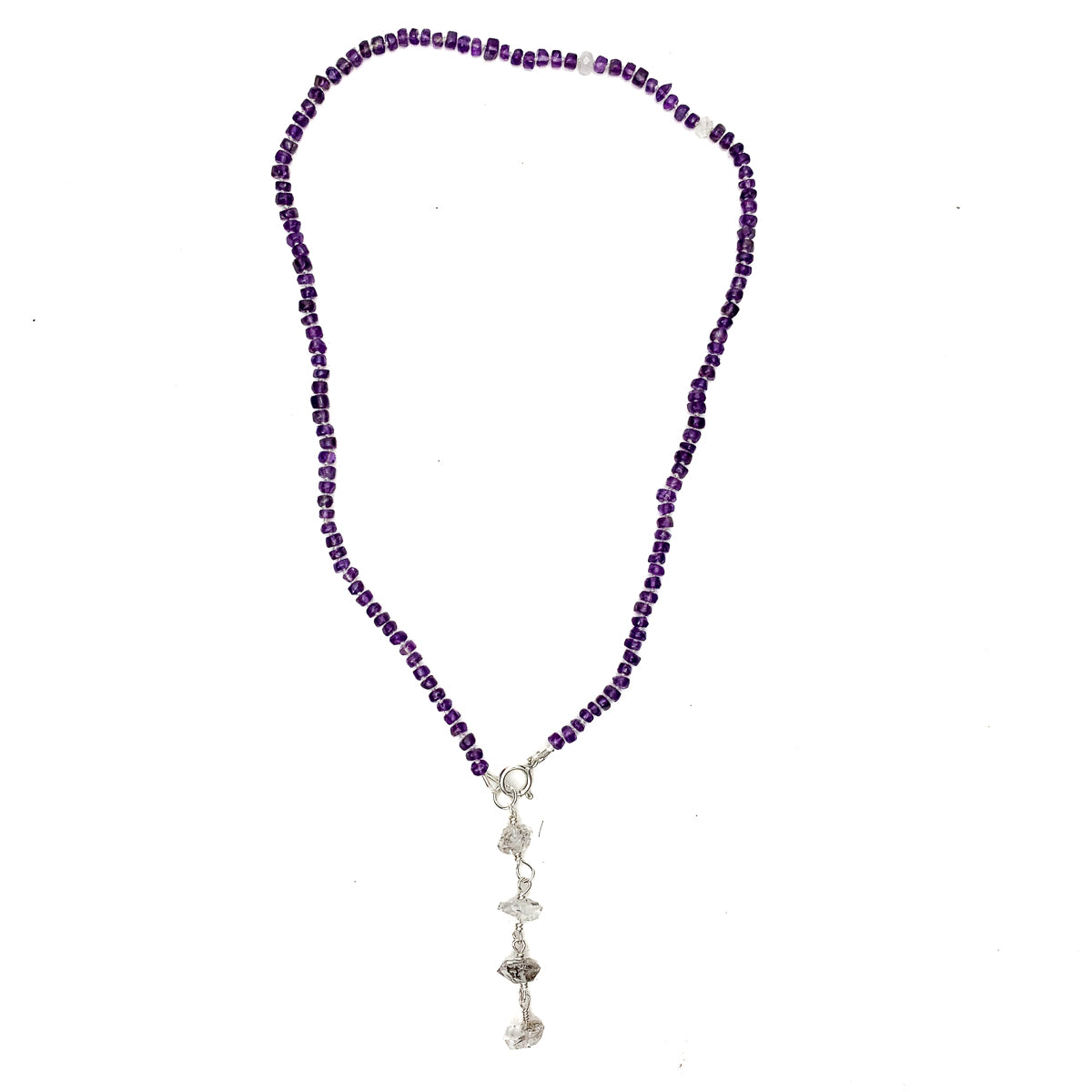 Amethyst, Moonstone, Herkimer Diamond Knotted Y Necklace With Sterling Silver Spring Clasp