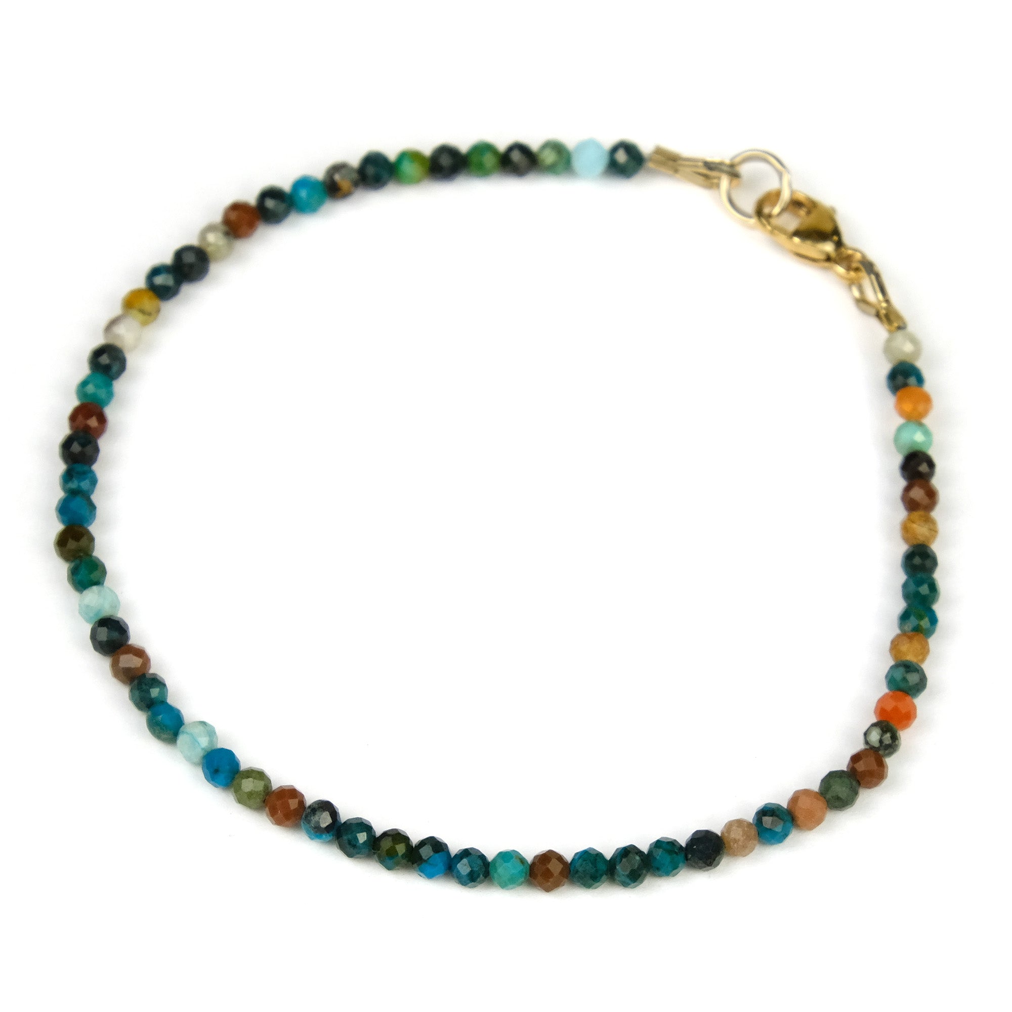 Chrysocolla 2.5mm Faceted Round Bracelet with Gold Filled Trigger Clasp