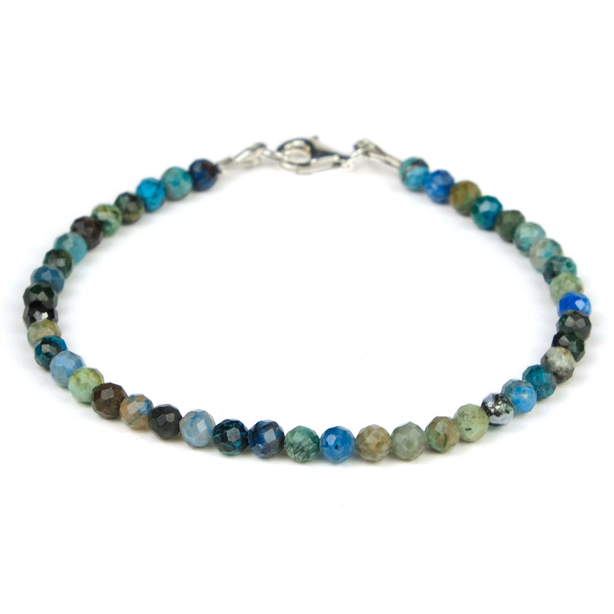 Chrysocolla 4mm Faceted Round Bracelet with Sterling Silver Trigger Clasp