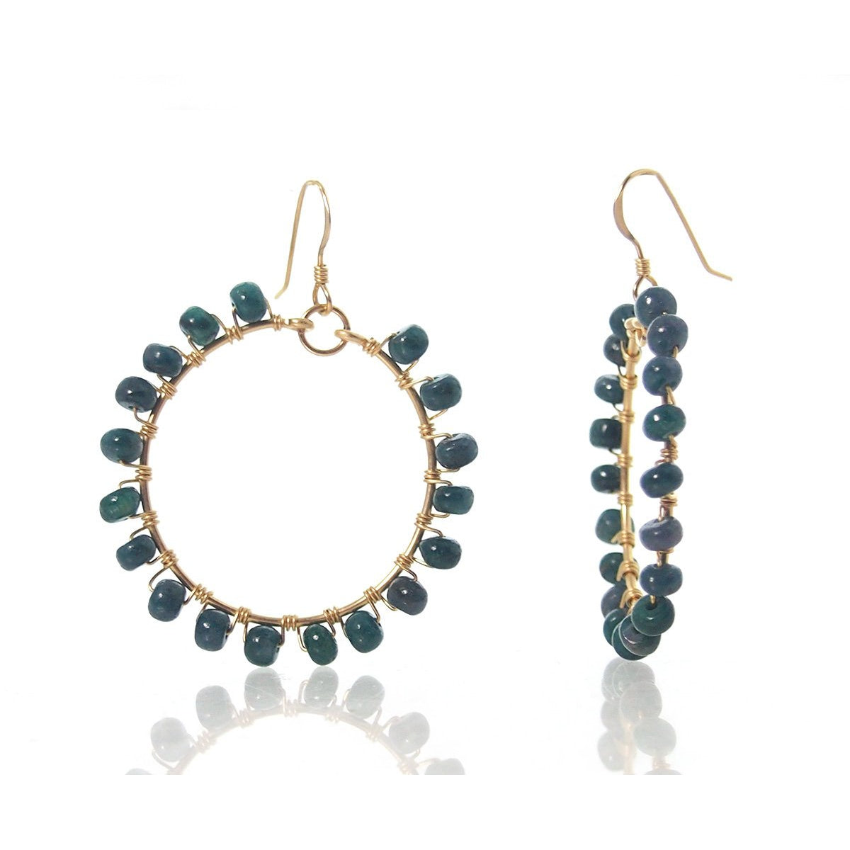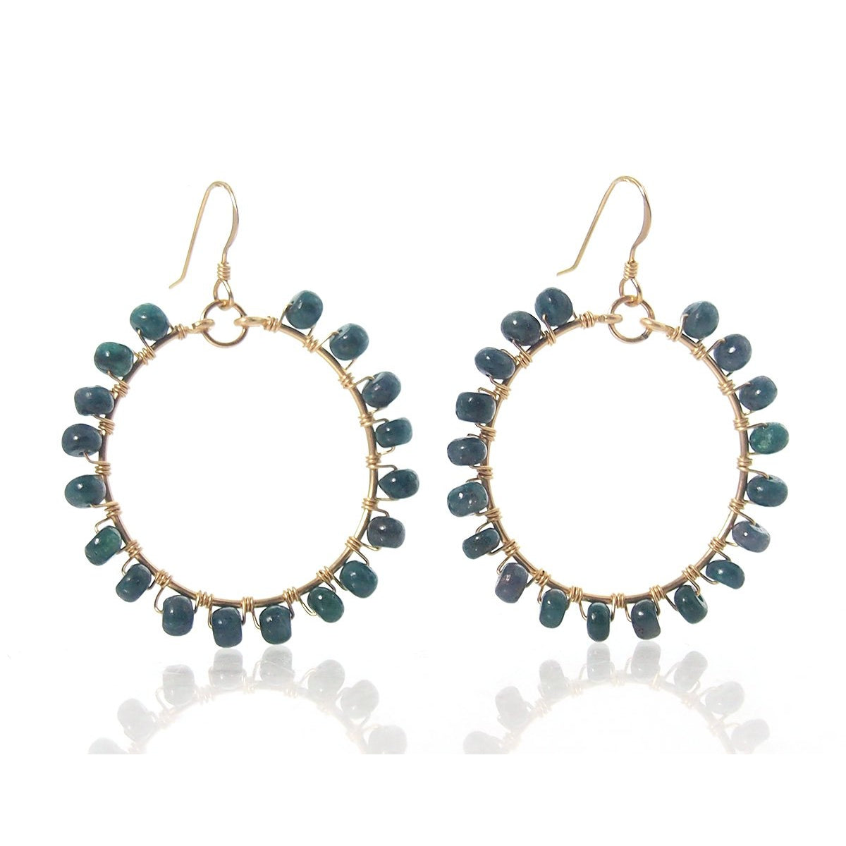 Emerald Hoop Earrings with Gold FIlled Earwires