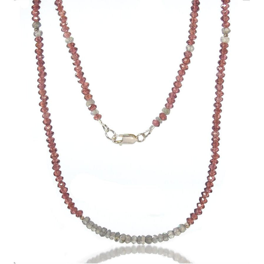 Garnet and Labradorite Necklace with Sterling Silver Lobster Clasp