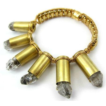 Herkimer Diamond and Brass Bullet Casing Bracelet with Gold Plated Magnetic Clasp