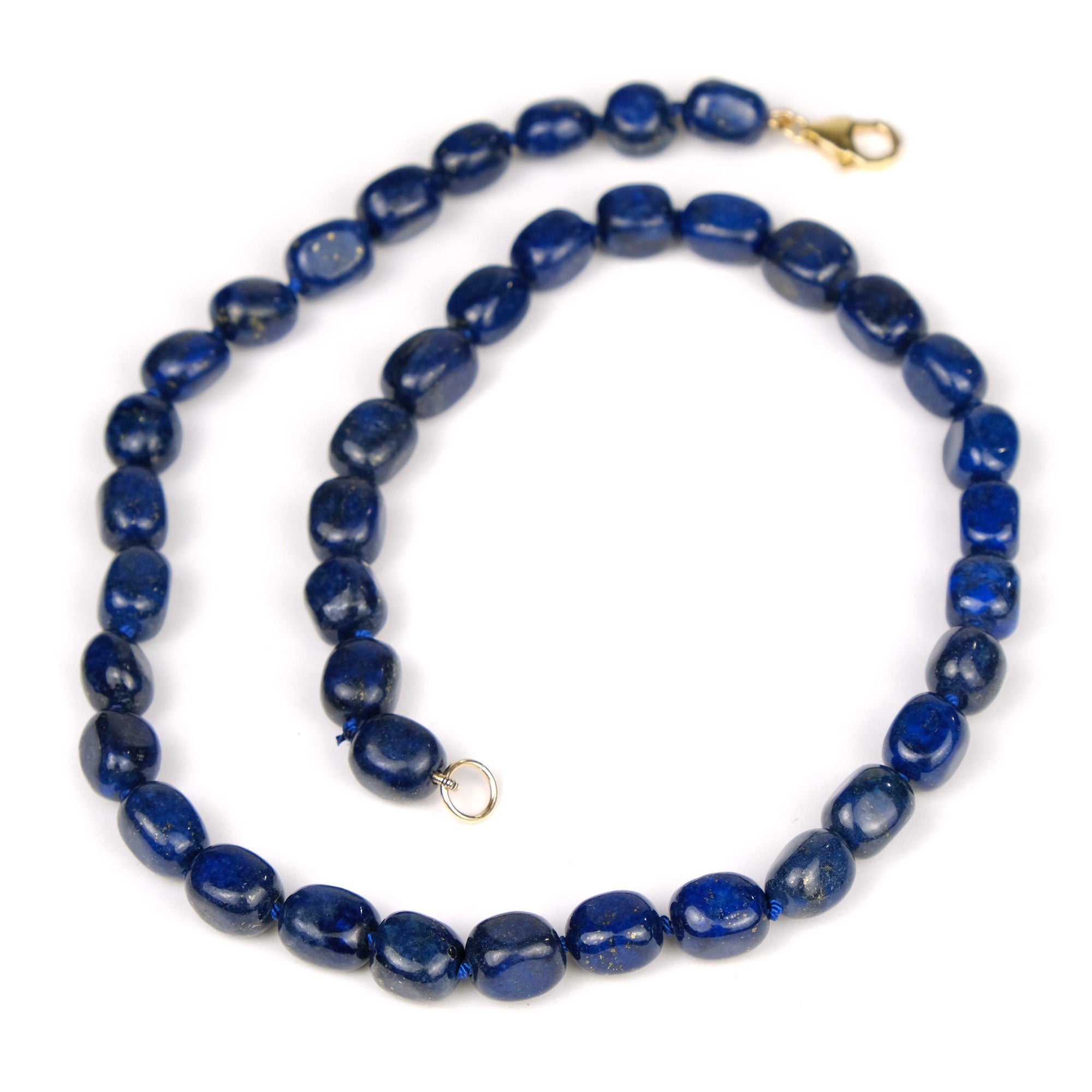Lapis Lazuli 10mm Smooth Nugget Knotted Necklace with Gold Filled Trigger Clasp