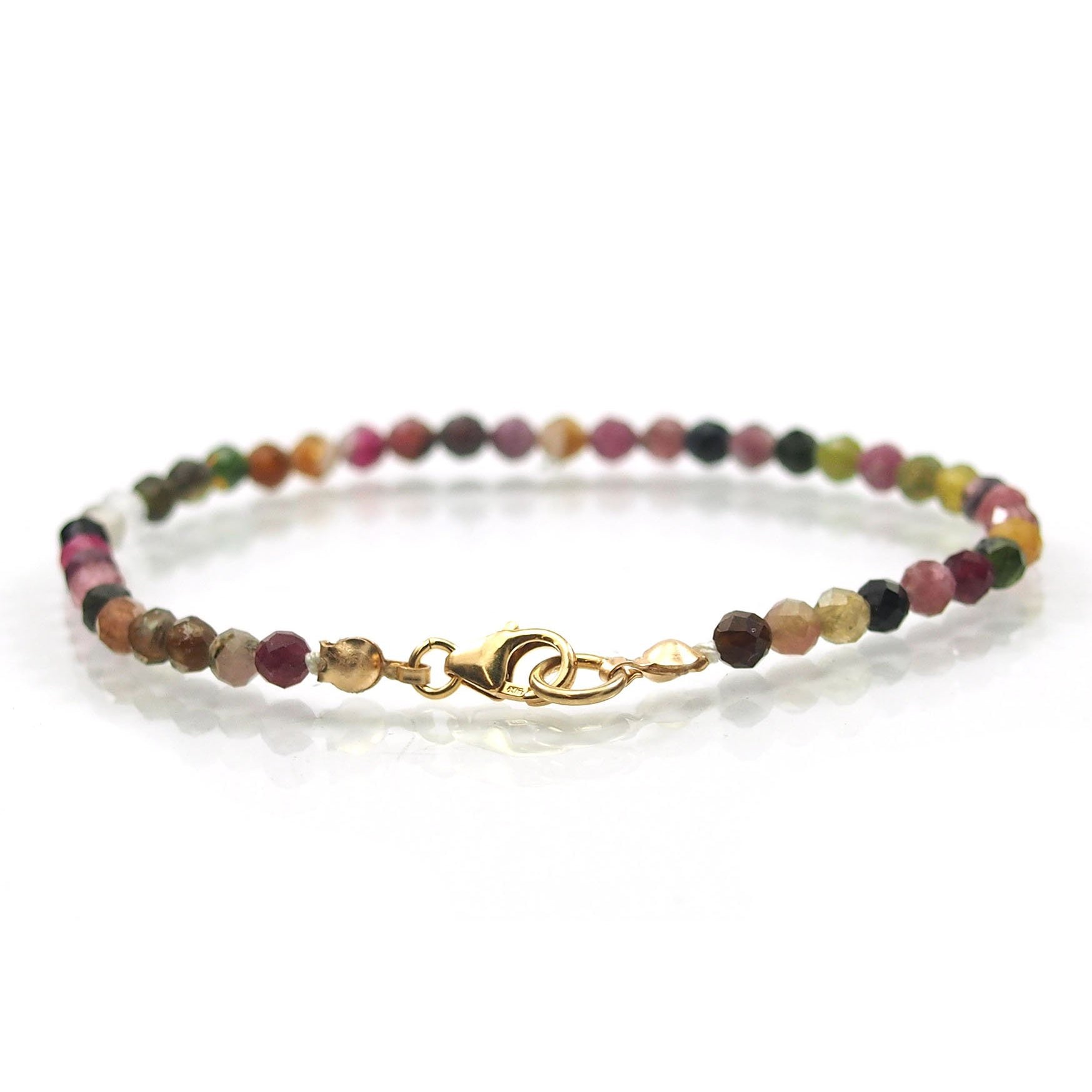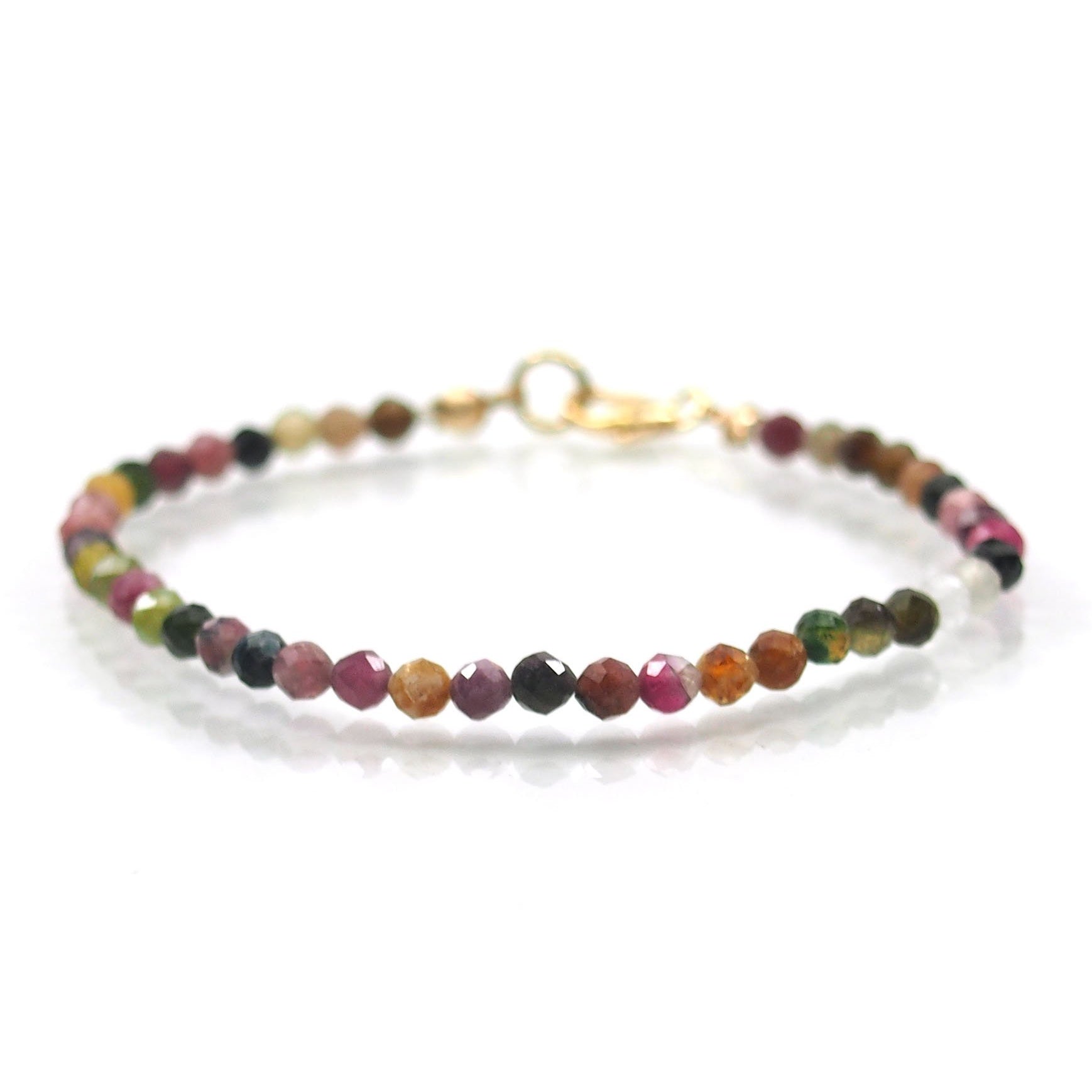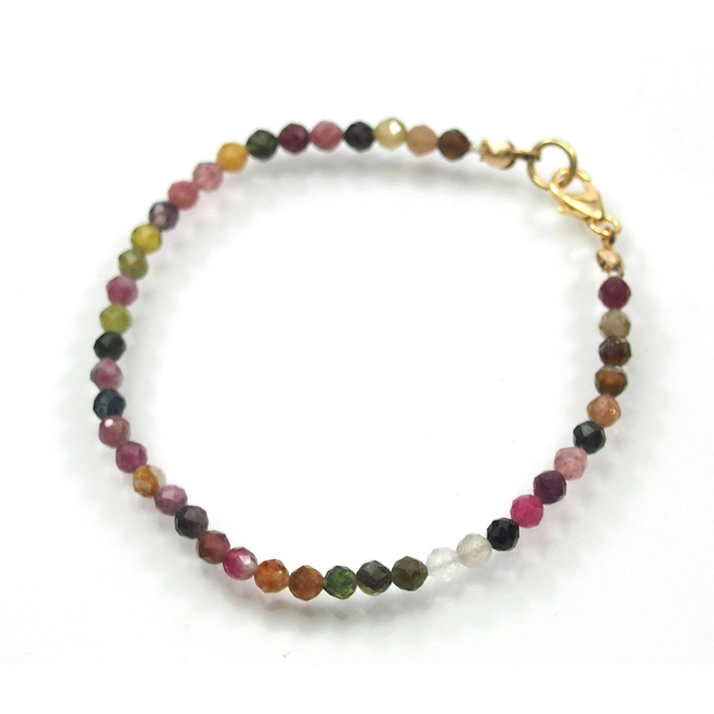 Multi-Colored Tourmaline 4mm Faceted Round Bracelet with Gold Filled Trigger Clasp