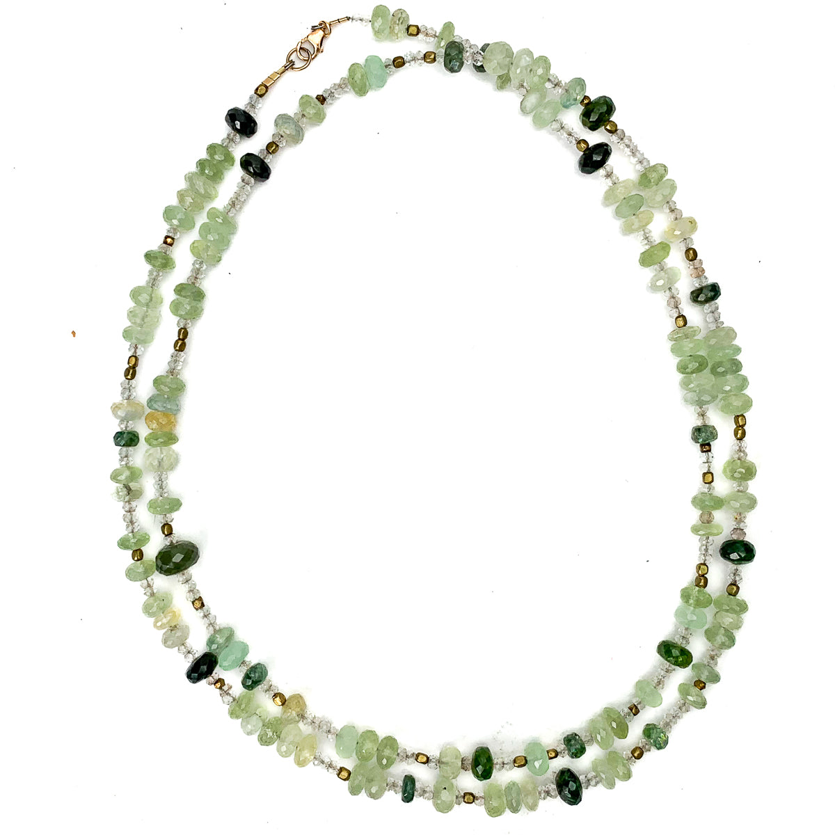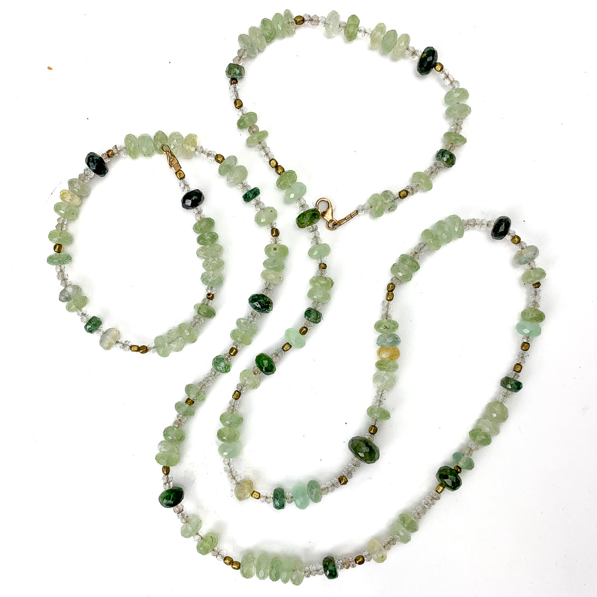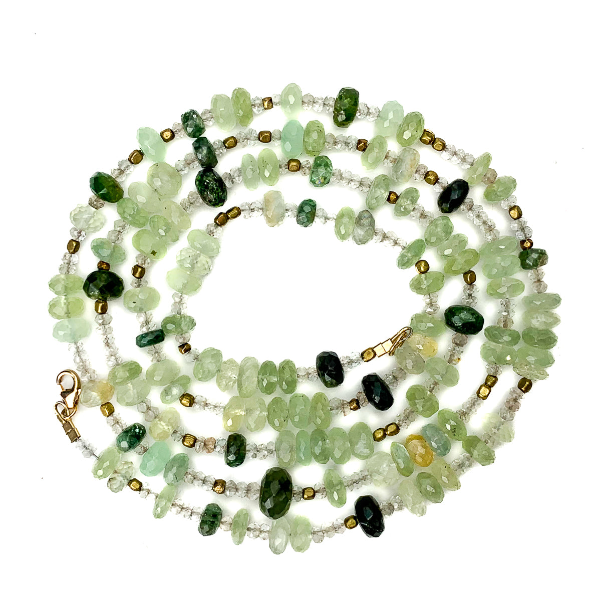 Prehnite, Crystal Quartz, Green Tourmaline and Brass Long Wrap Necklace