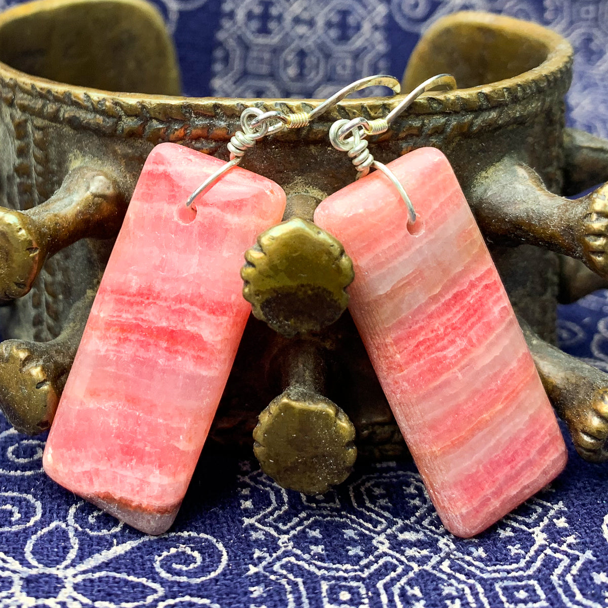 Rhodochrosite Earrings With Sterling Silver French Earwires