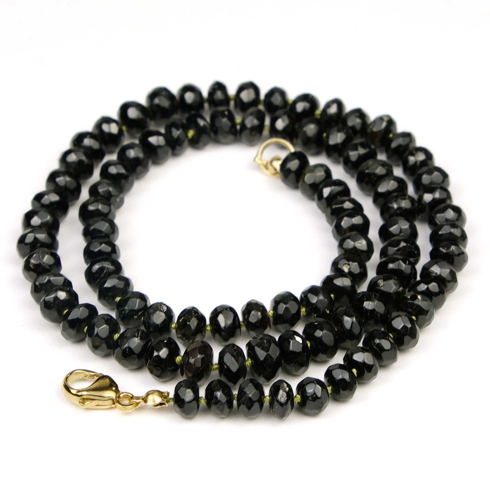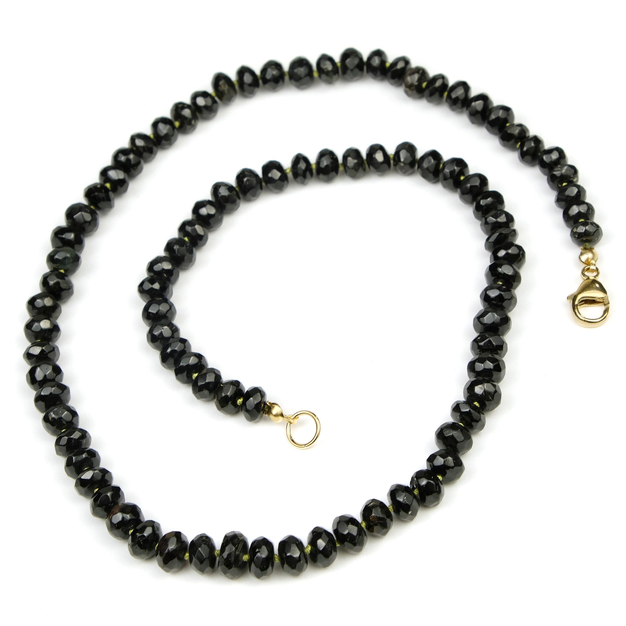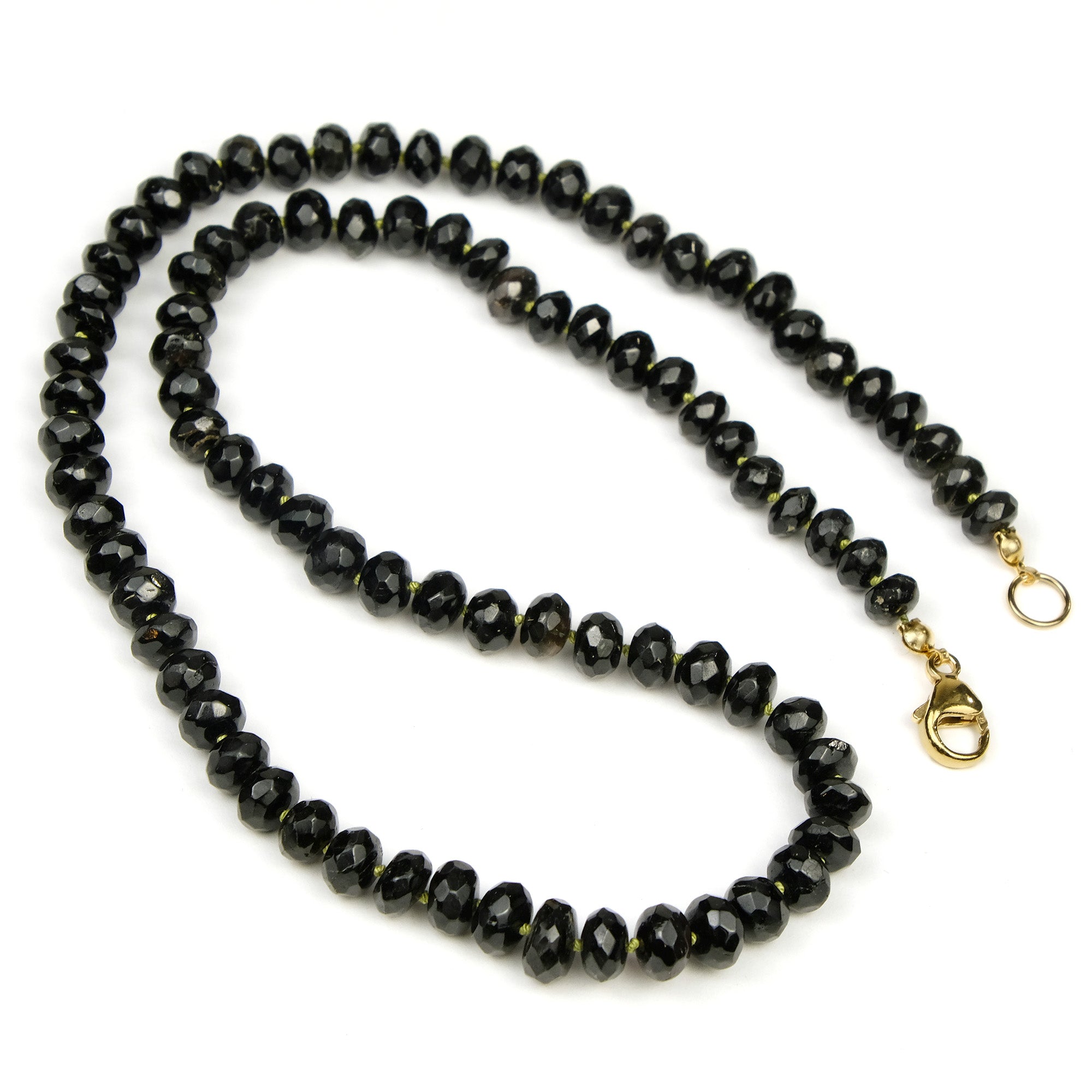 Black Tourmaline 6mm Faceted Rondelle Knotted Necklace with Gold Filled Trigger Clasp