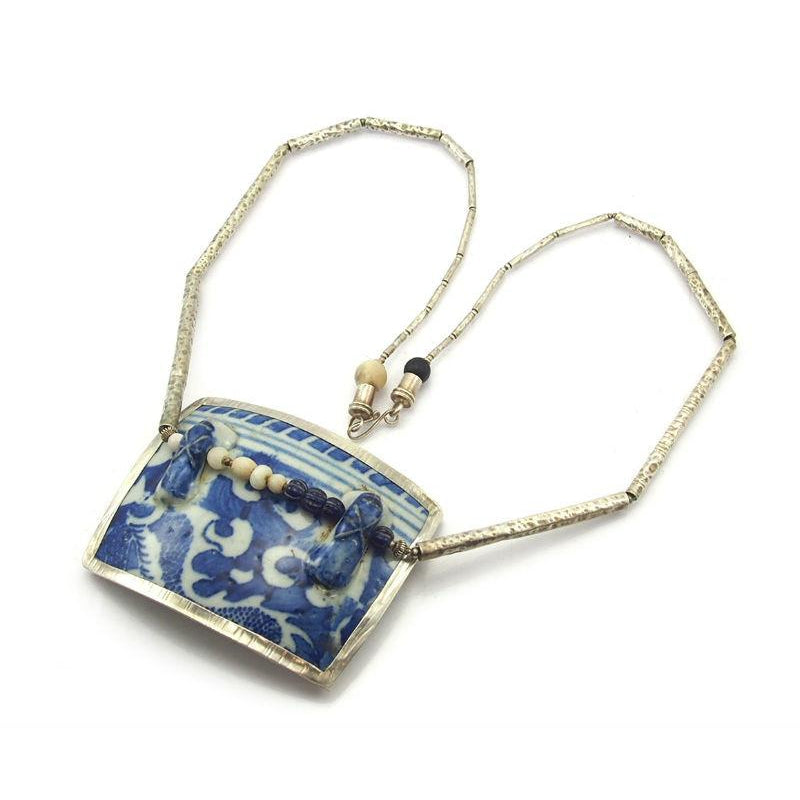 95% Pure Silver Beads with Chinese Pottery Fragment Necklace