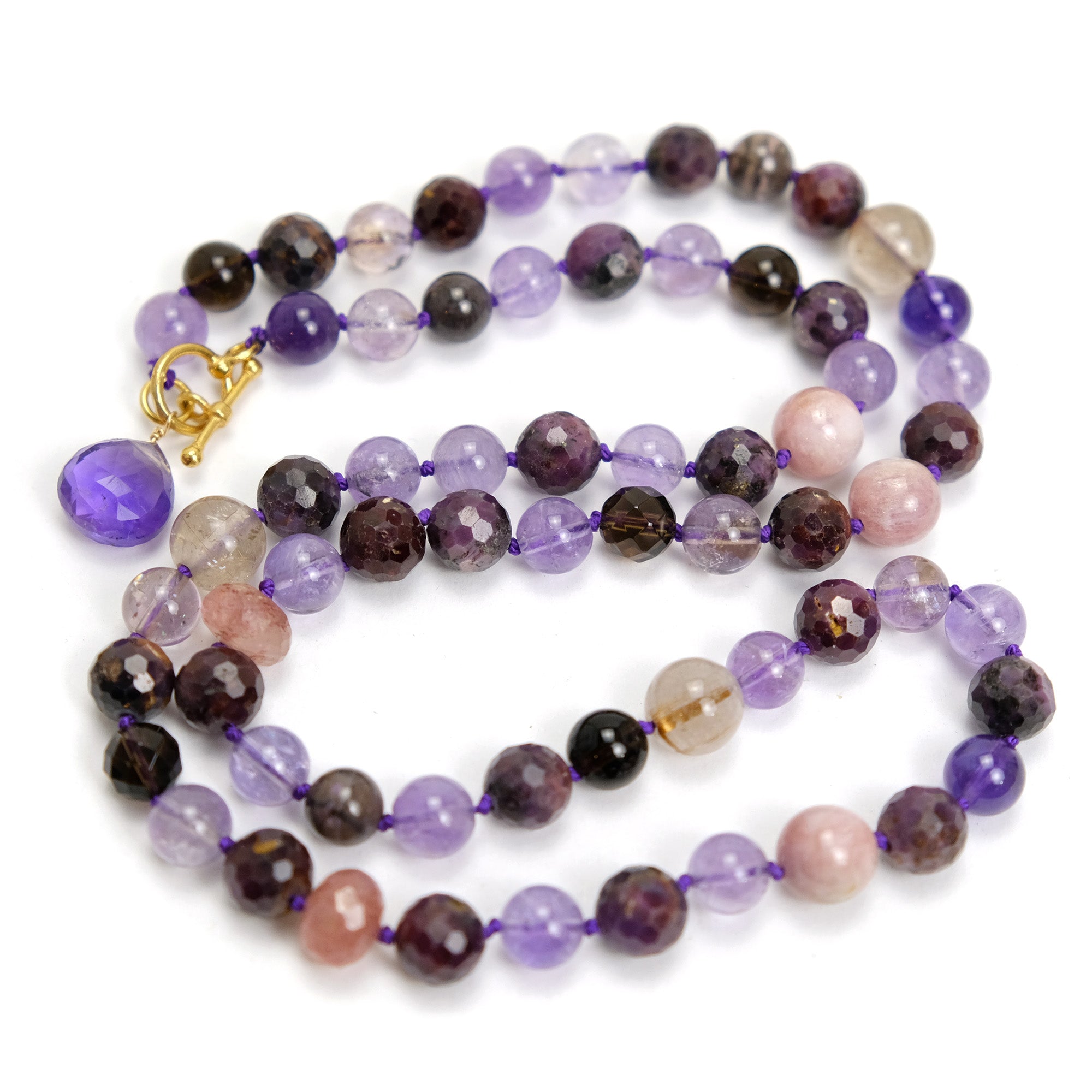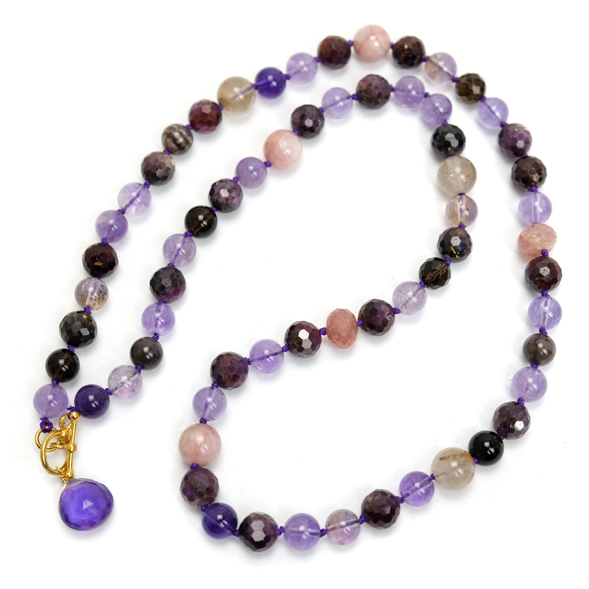 Amethyst + Ruby Knotted Necklace 8 to 10mm