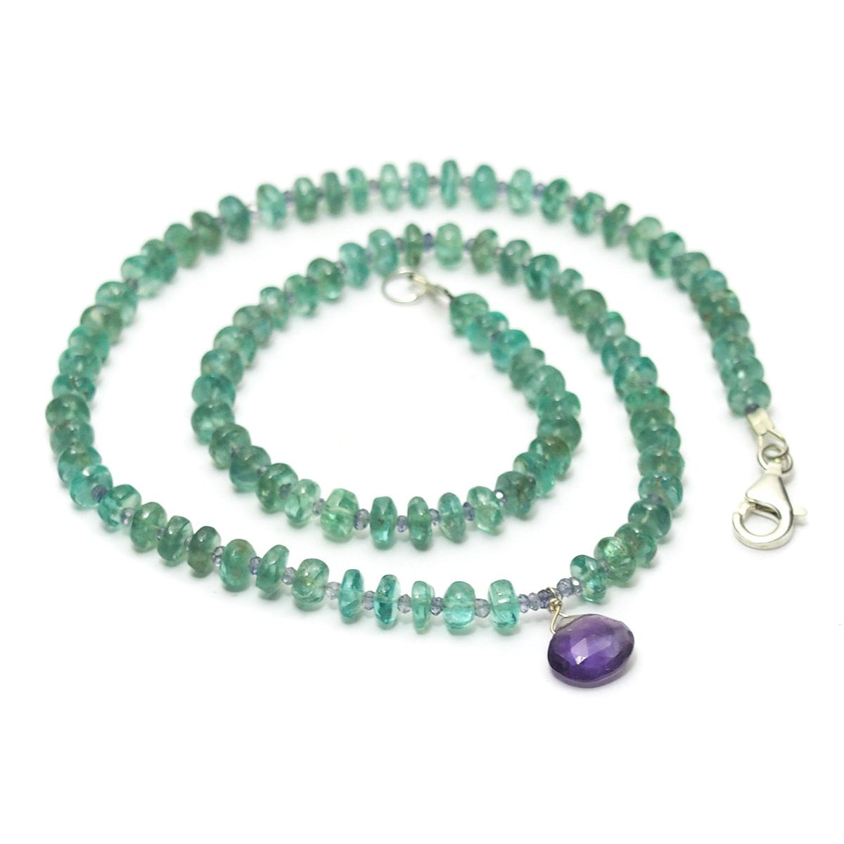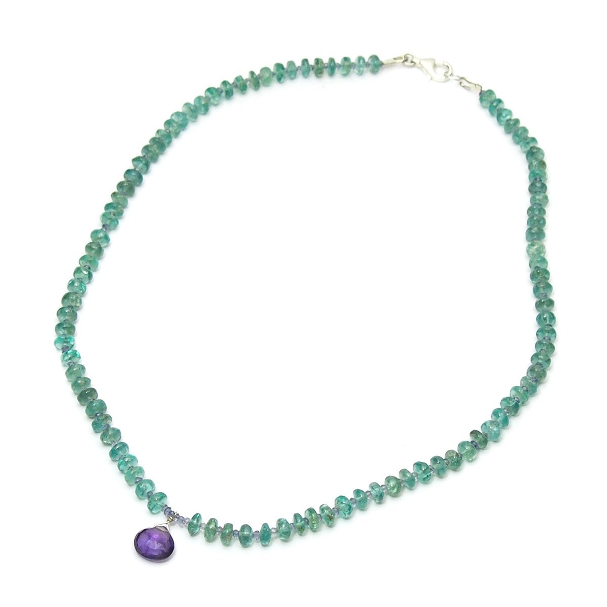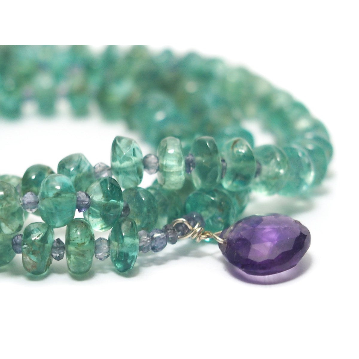 Apatite and Iolite Necklace with Amethyst Drop with Sterling Silver Trigger Clasp