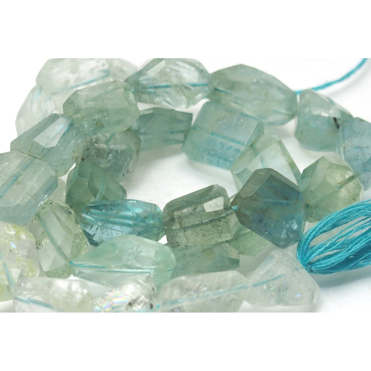 Aquamarine Faceted Nugget Strand