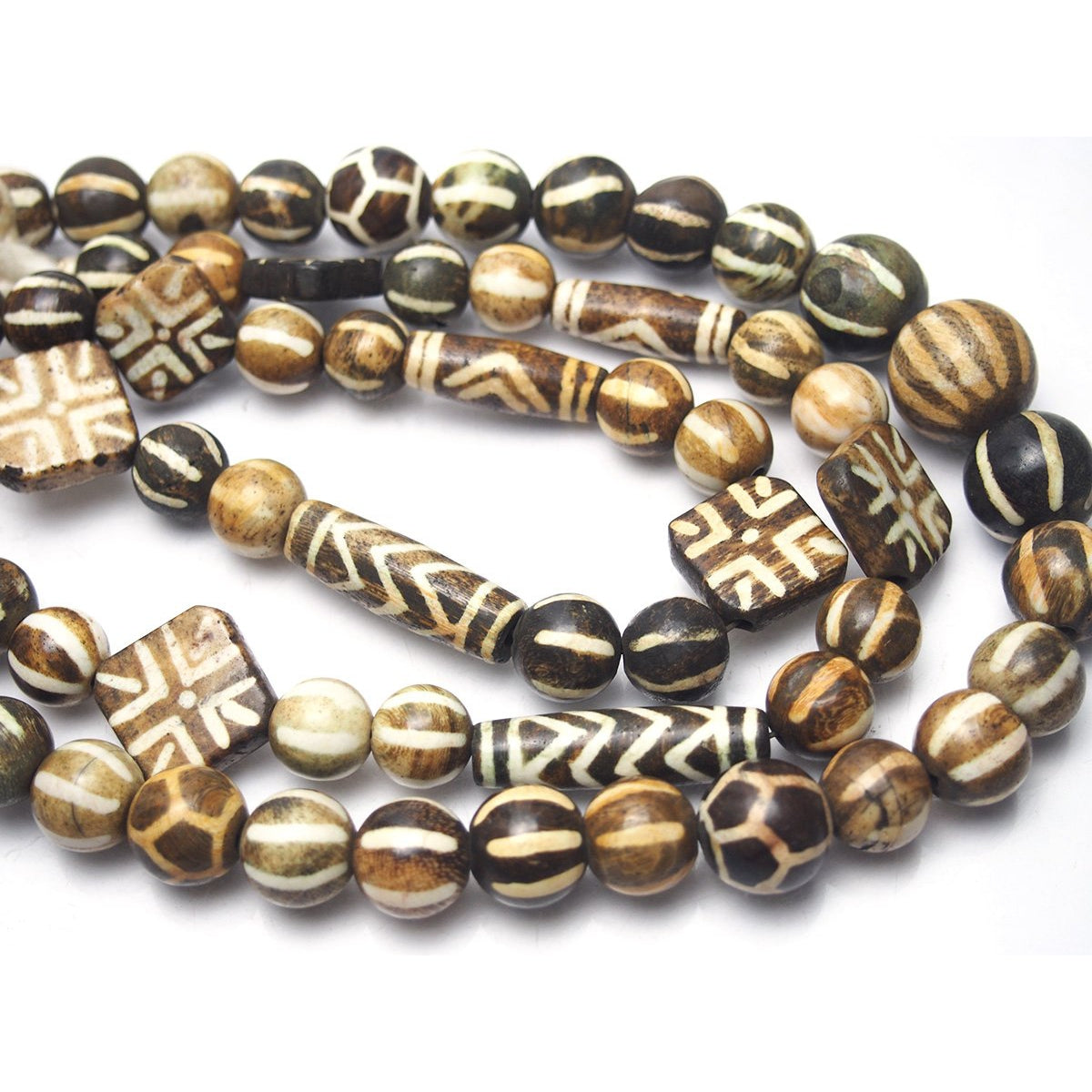 Petrified Palmwood Batik "Pumtek" Beads from Burma