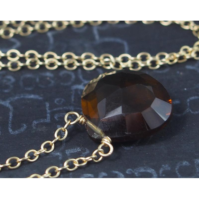 Beer Quartz Necklace On Gold Filled Chain With Gold Filled Trigger Clasp