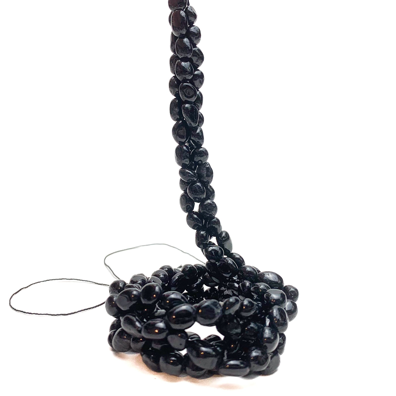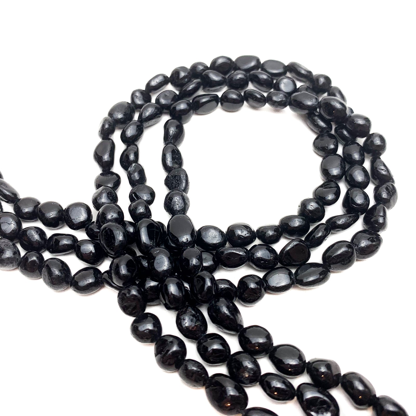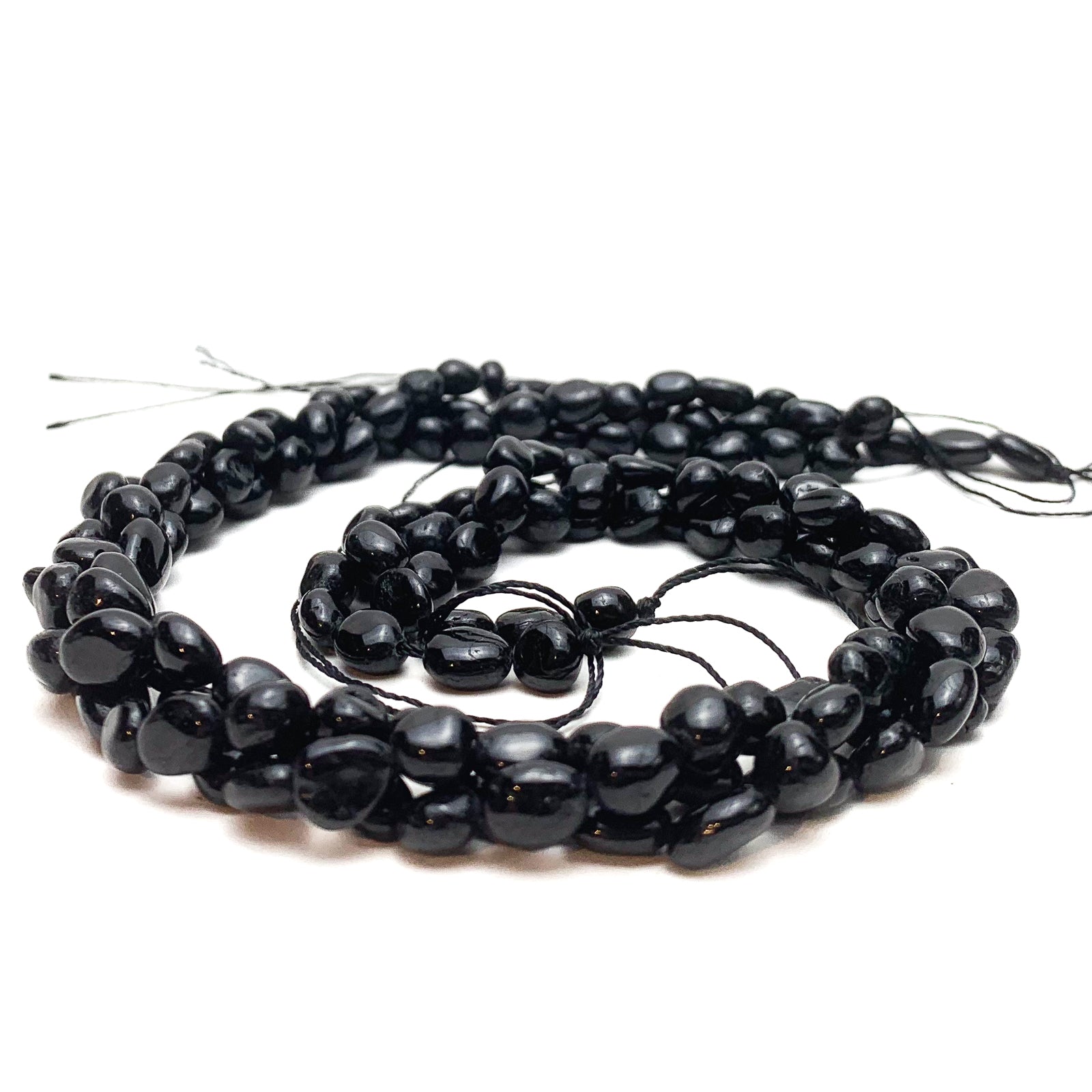 Black Tourmaline Small Smooth Pebbles Bead Strand
