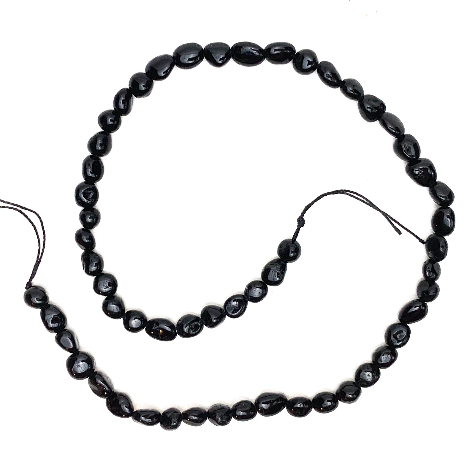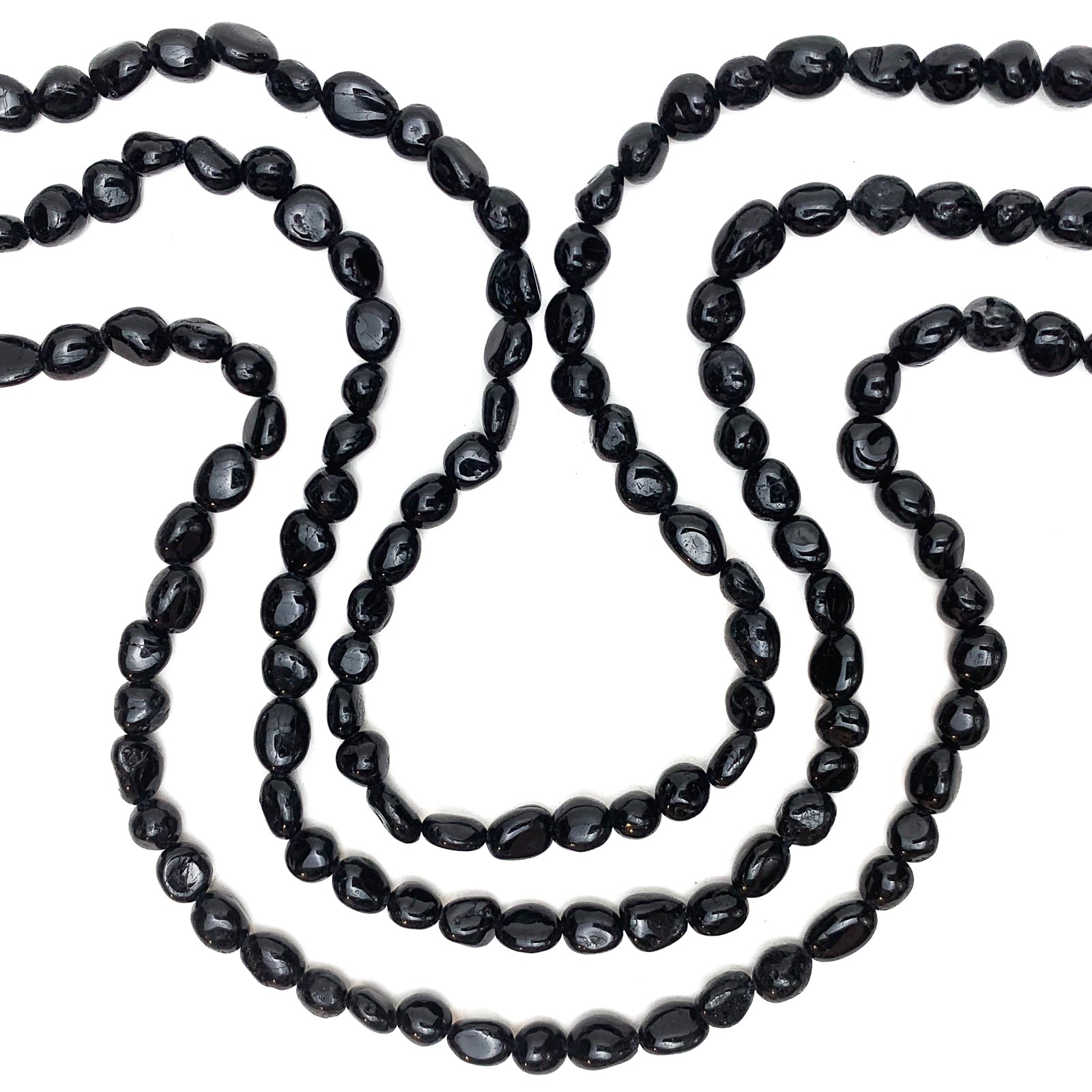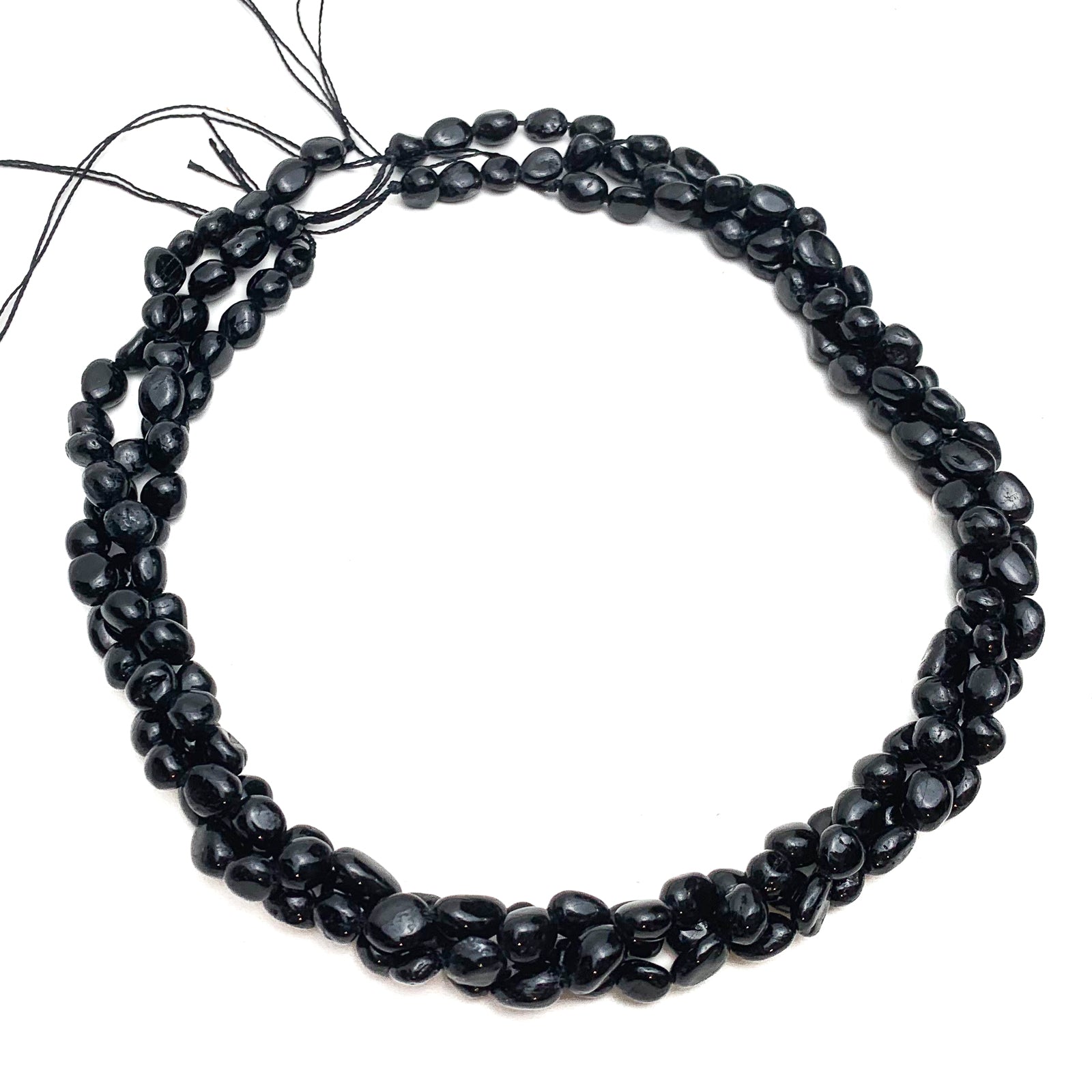 Black Tourmaline Small Smooth Pebbles Bead Strand