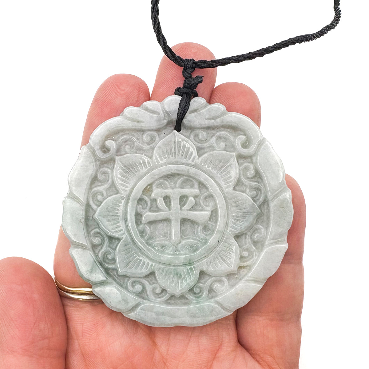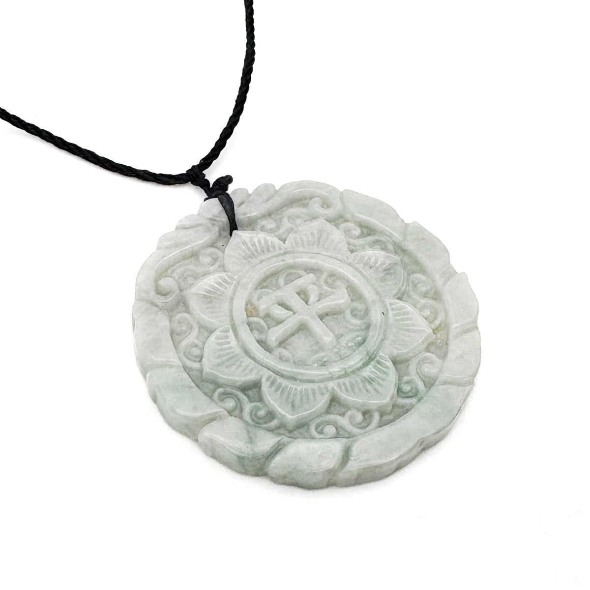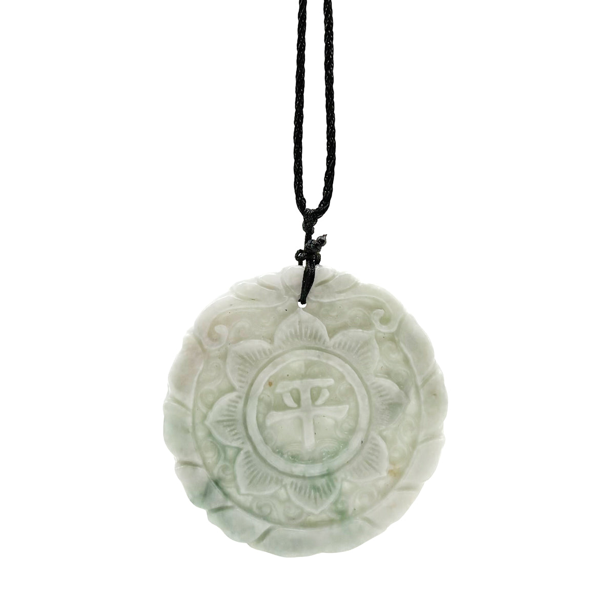 Certified Green Lavender Natural A Jadeite Double Face Flower Yu Symbol Safety Pendant