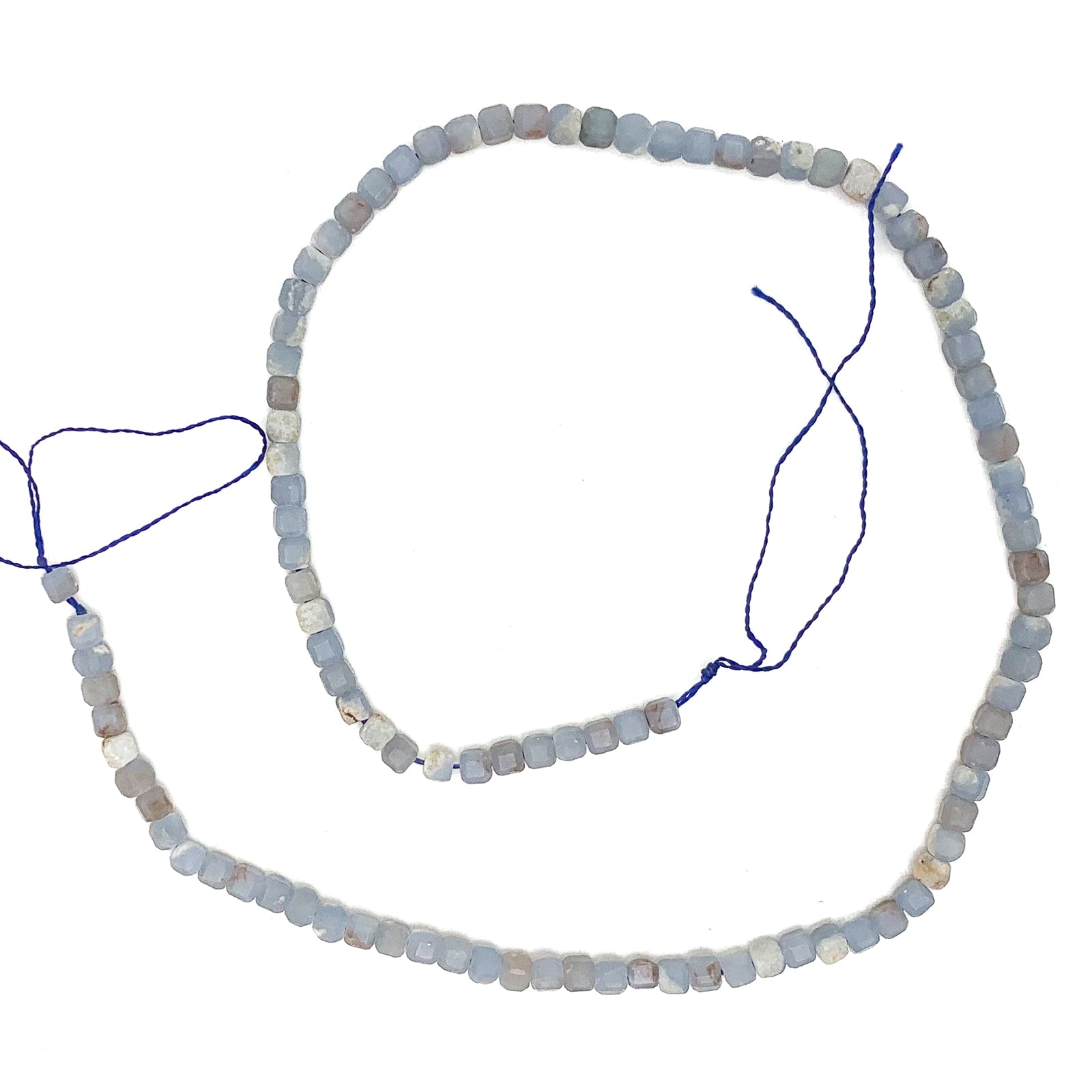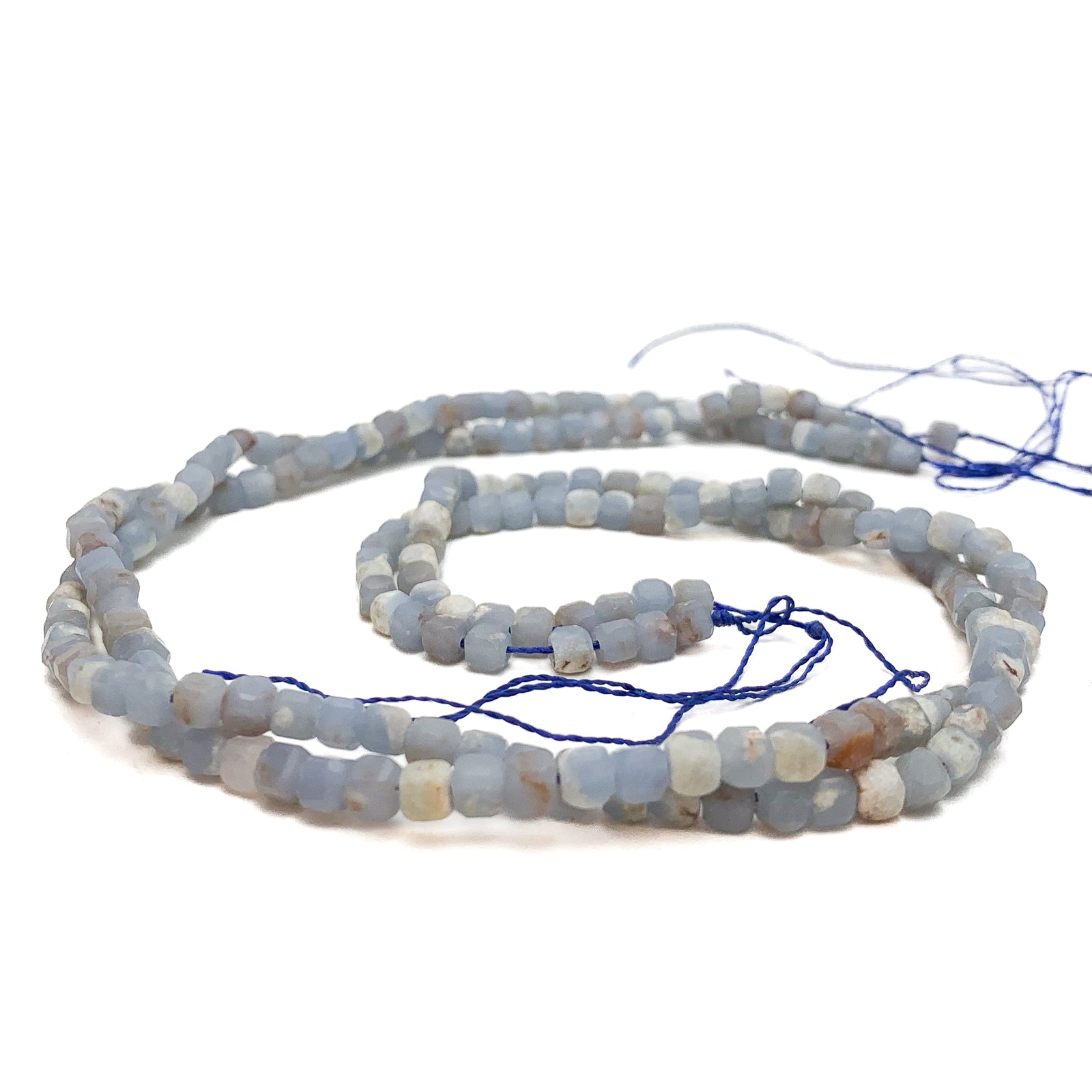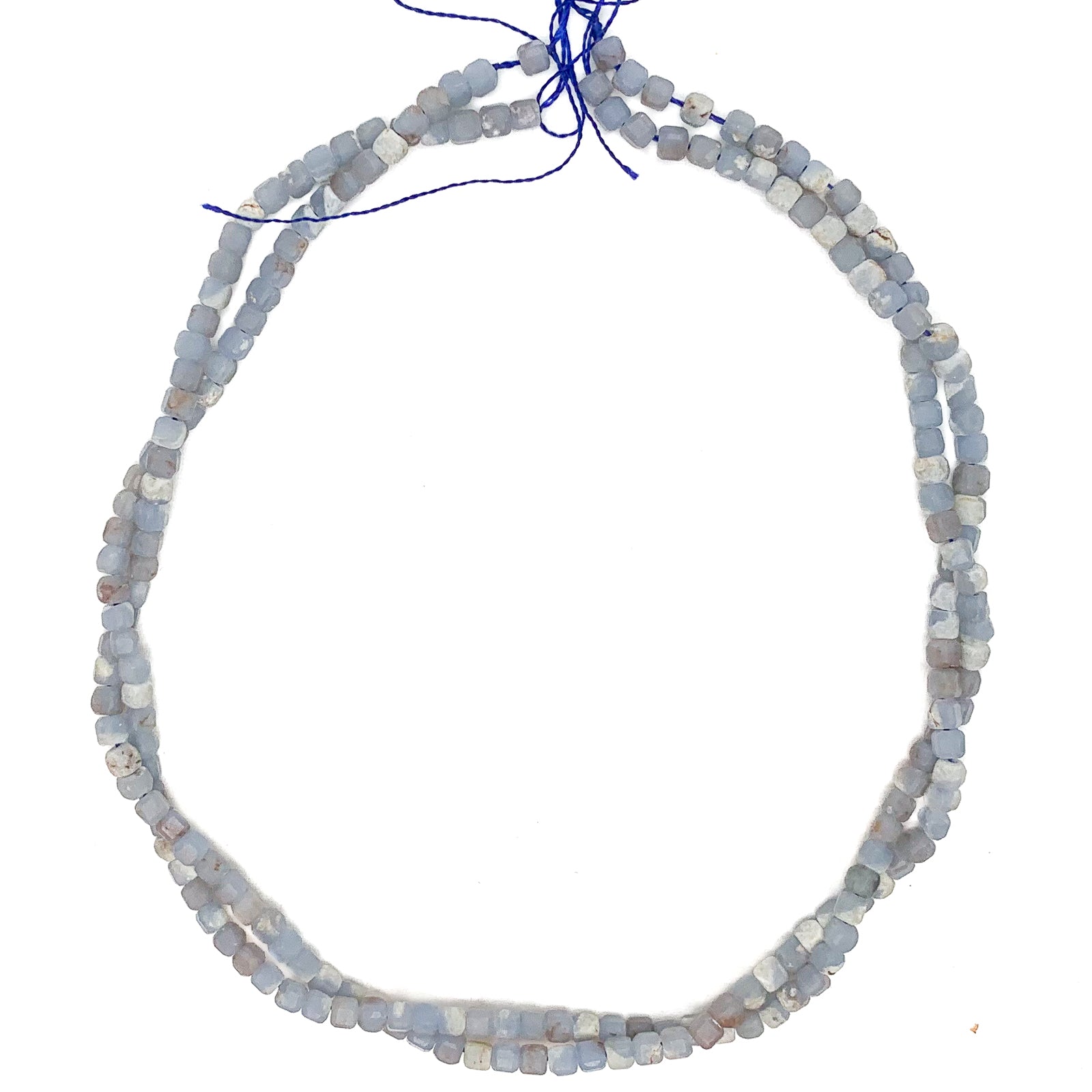 Chalcedony Blue 4mm Faceted Cubes Bead Strand