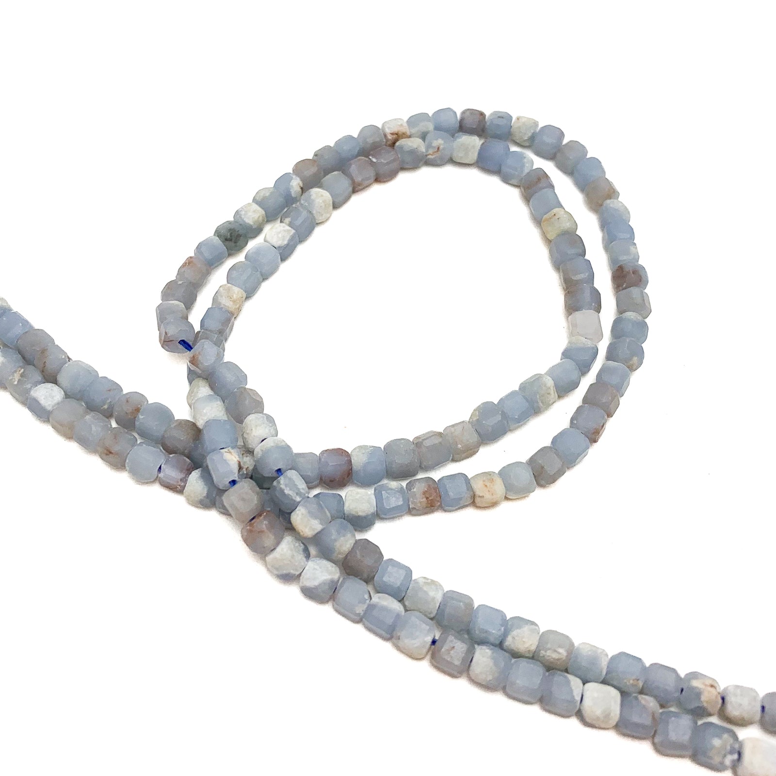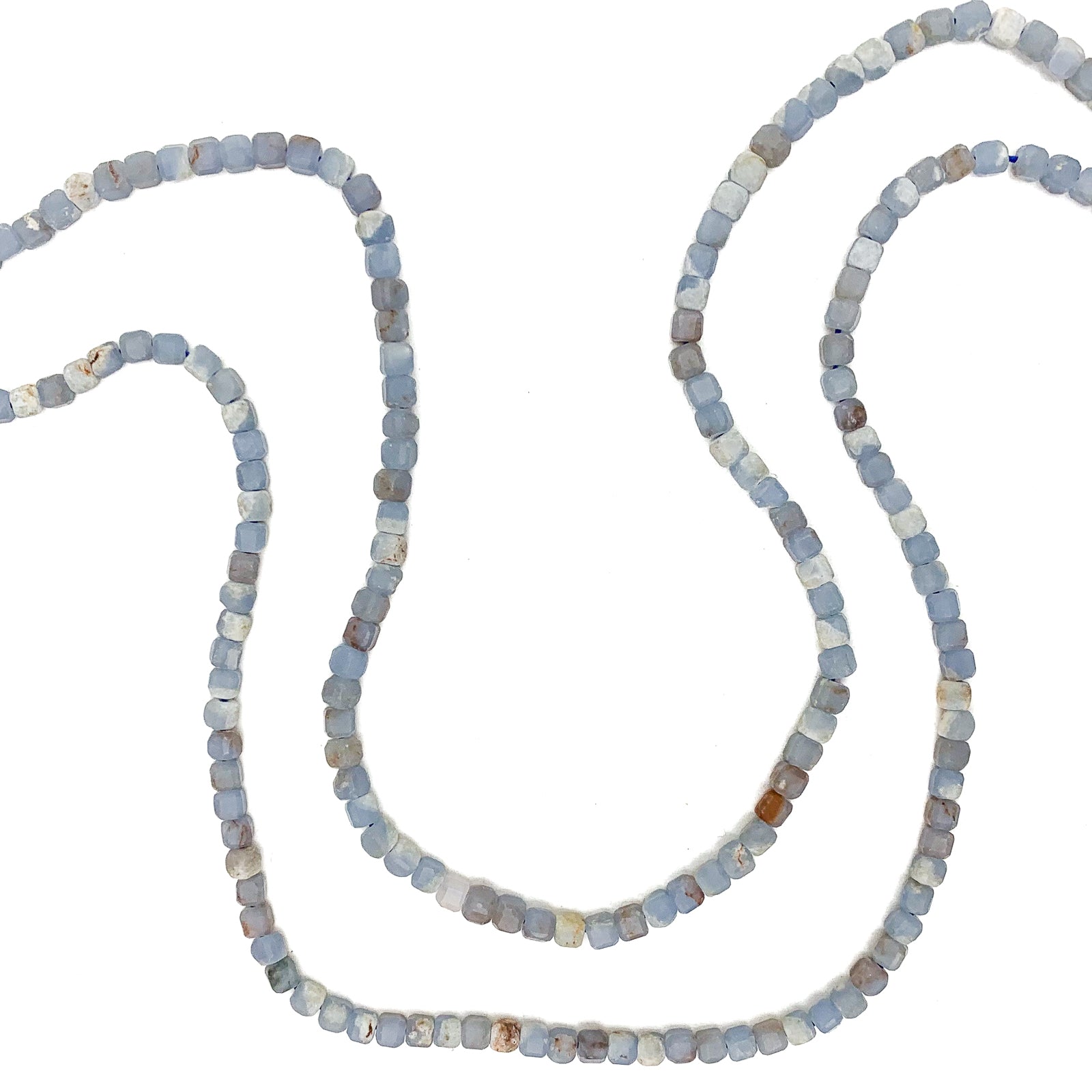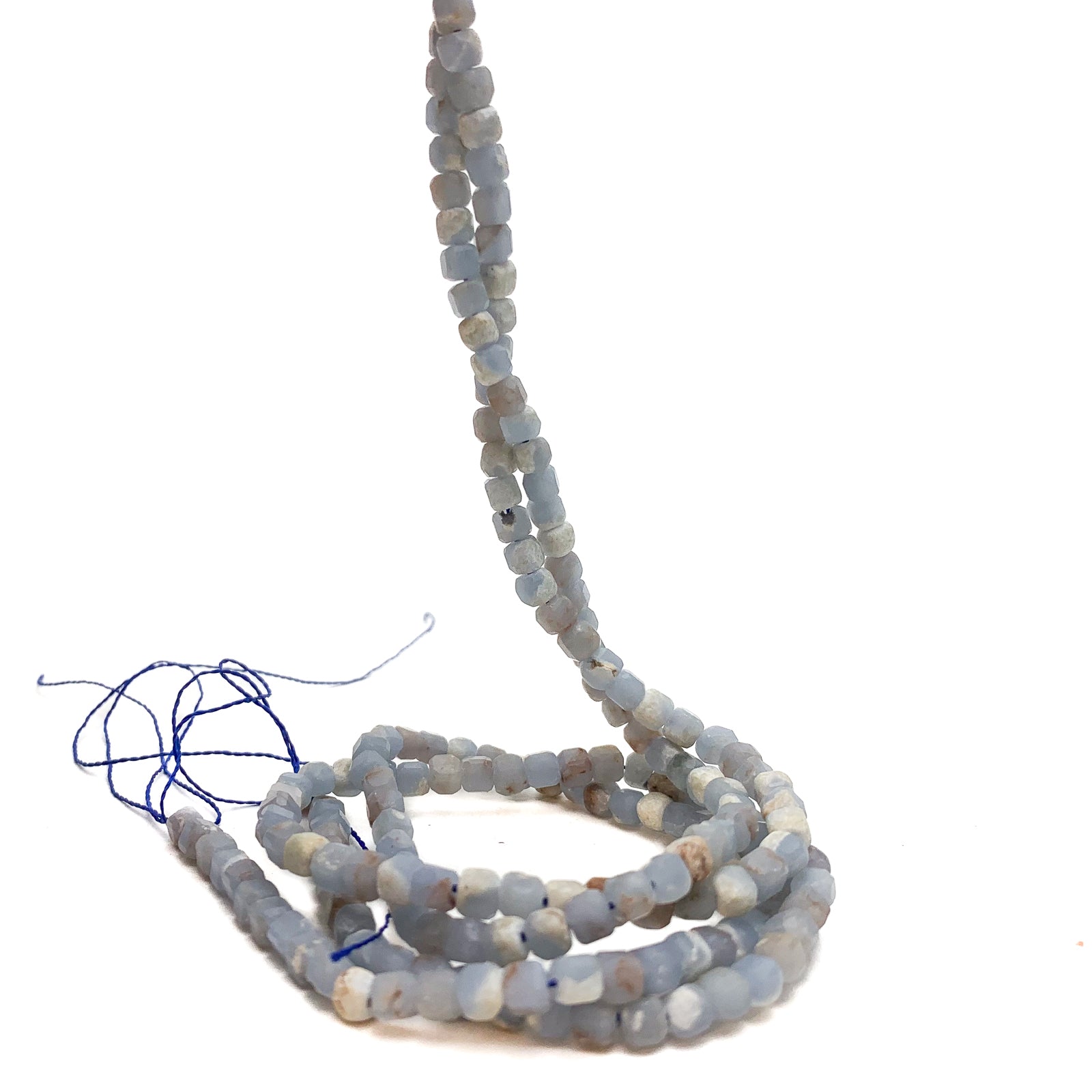 Chalcedony Blue 4mm Faceted Cubes Bead Strand