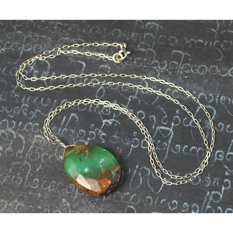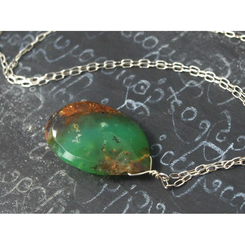 • Chrysoprase Necklace On Sterling Silver Chain With Sterling Silver Spring Clasp