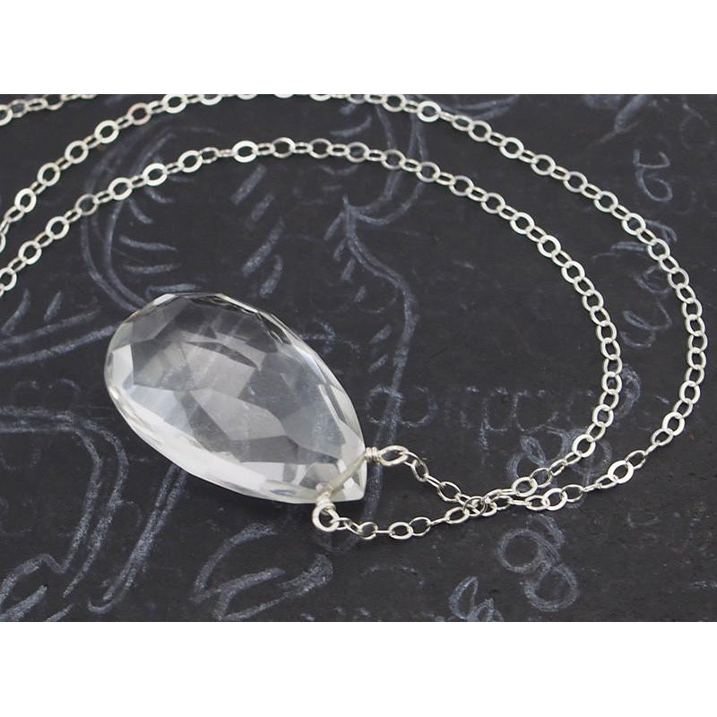 Crystal Quartz Necklace on Sterling Silver Chain with Sterling Silver Trigger Clasp