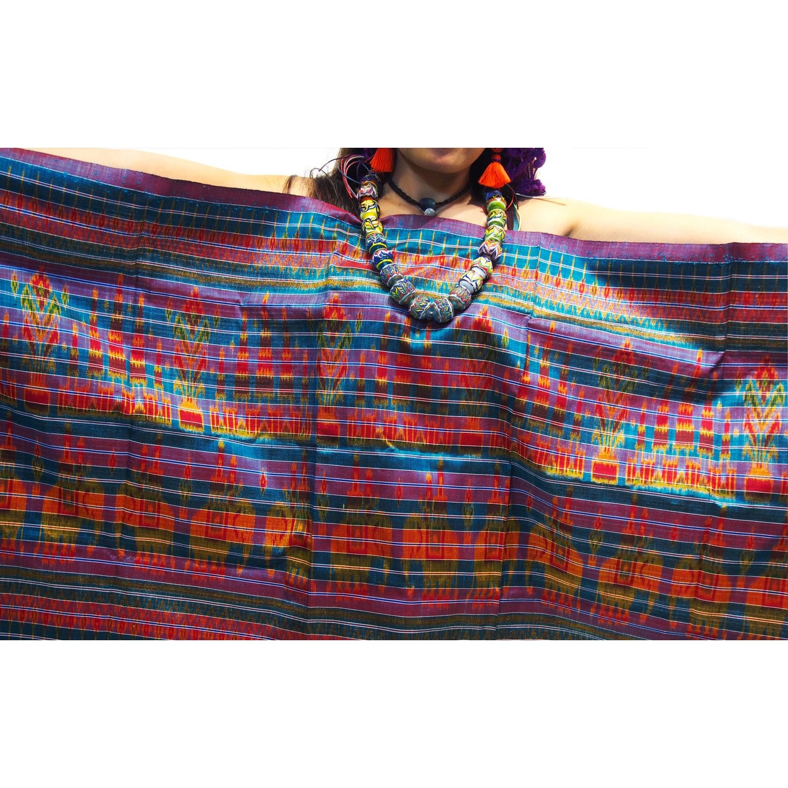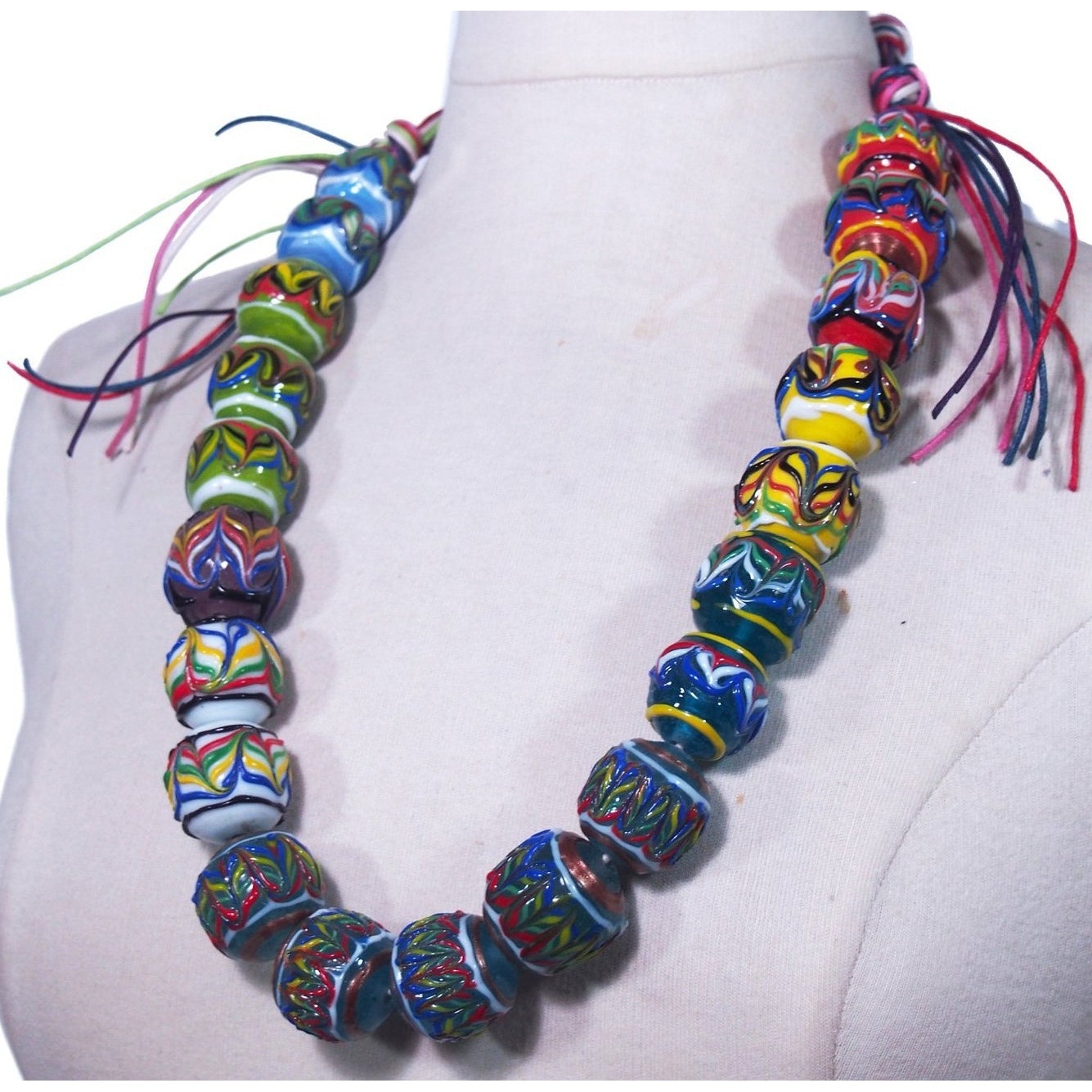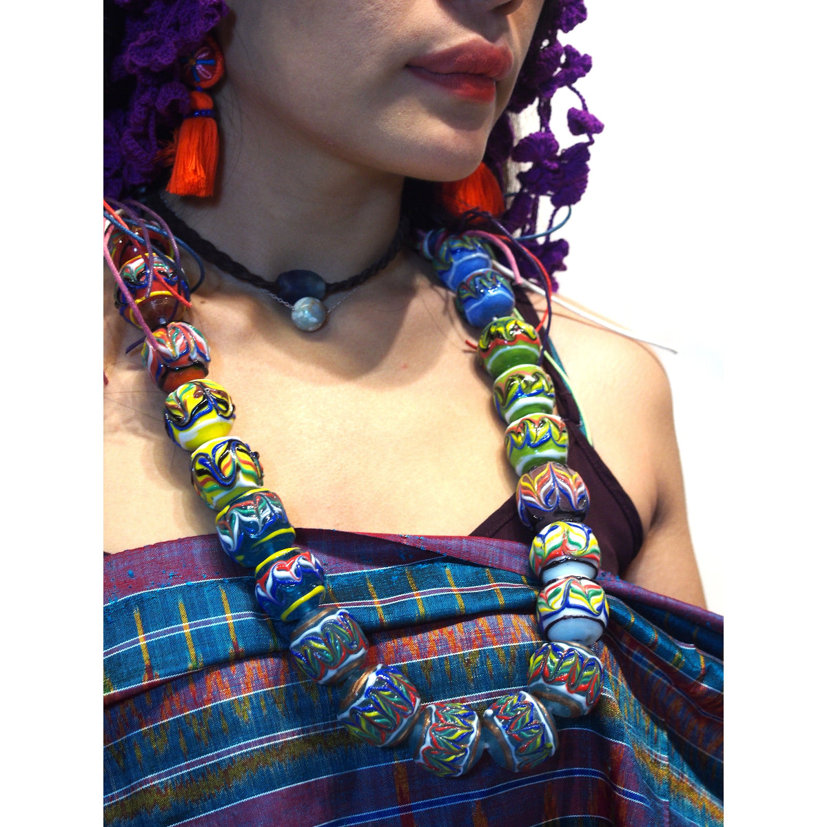 Ensemble 24: Northern Thailand Heirloom Elephant 100% Silk Wrap with XL Hand Wound "Feather" Glass Beads - Each Item Sold Separately