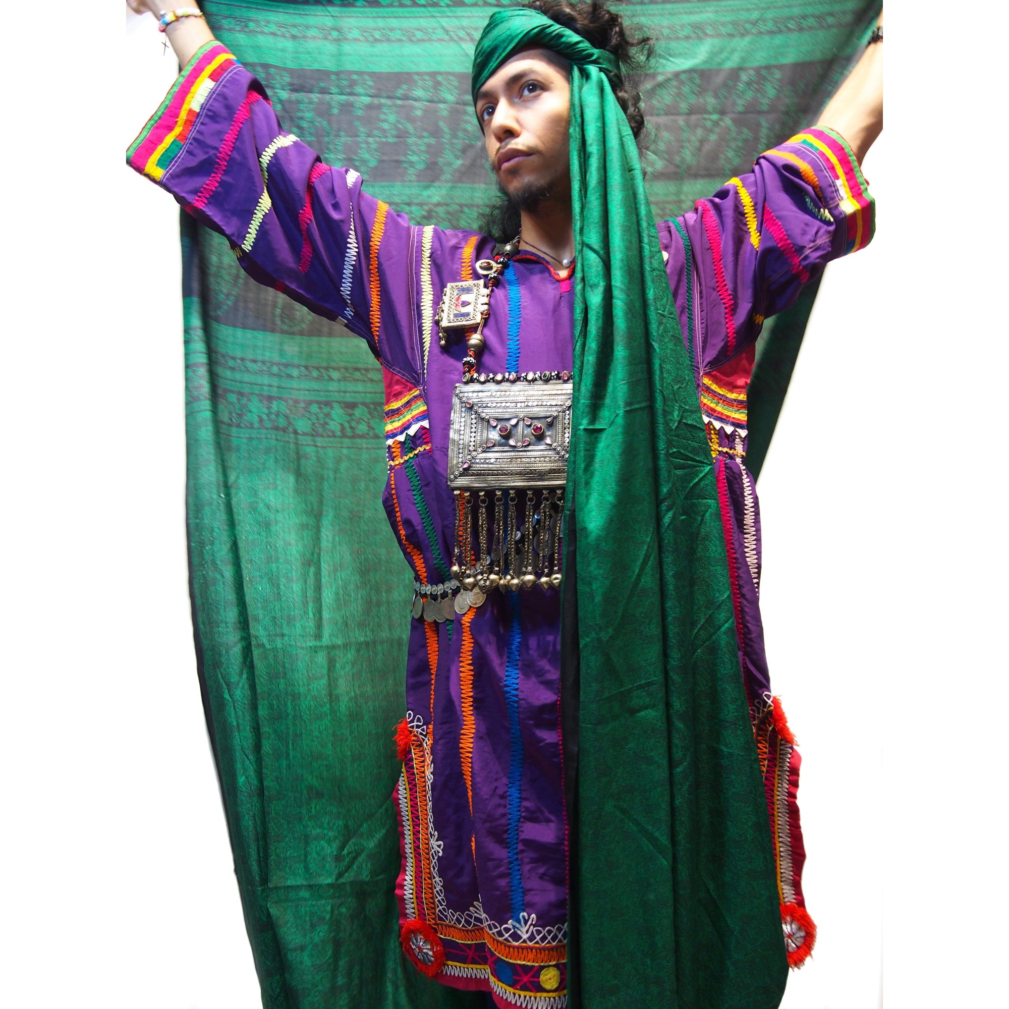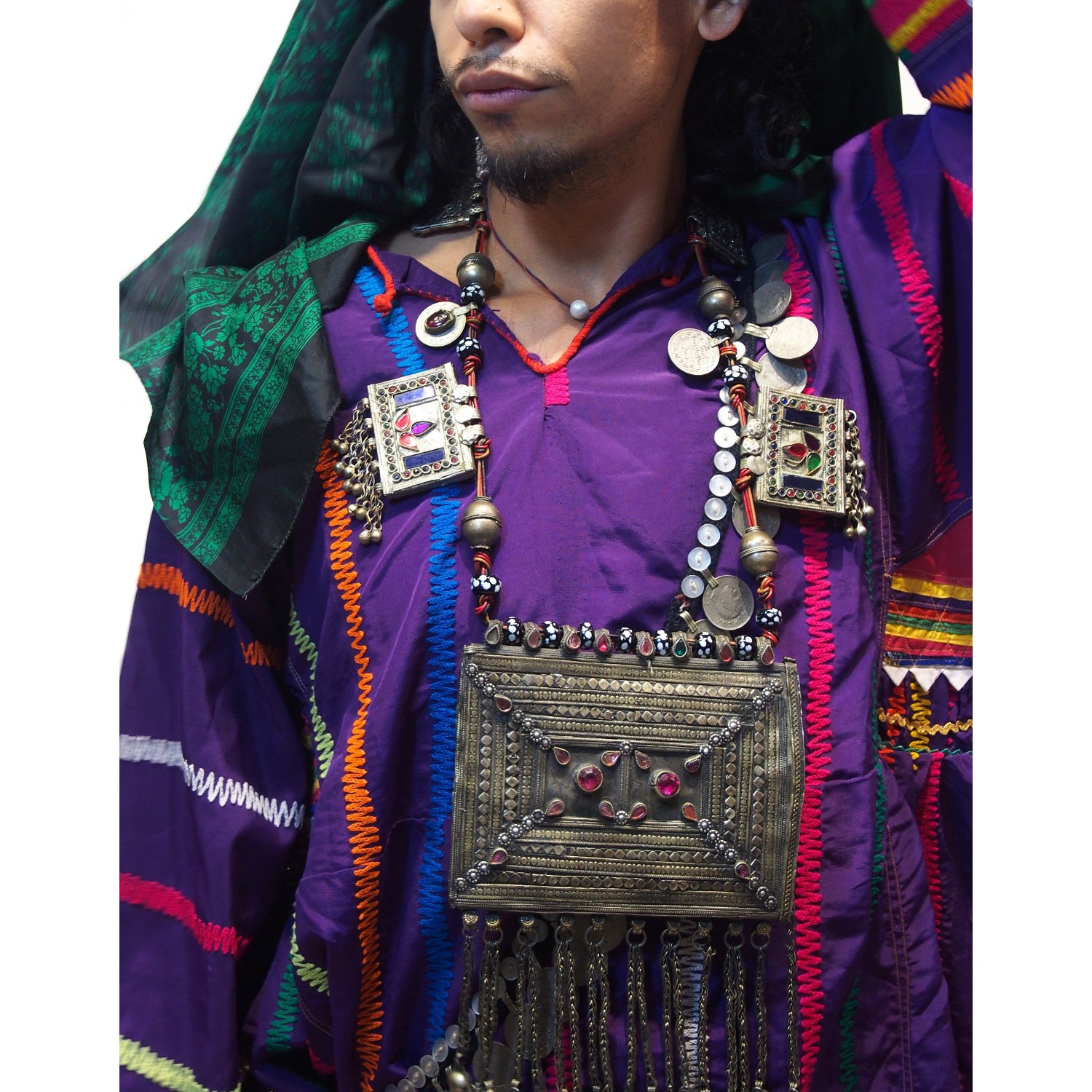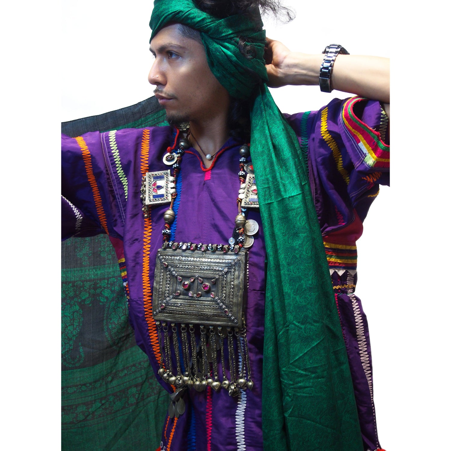 Ensemble 4: Vintage Afghan Kuchi Tunic with Silk Indian Sari and Kuchi Necklace - Each Item Sold Separately