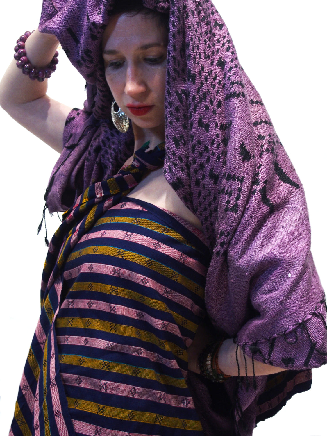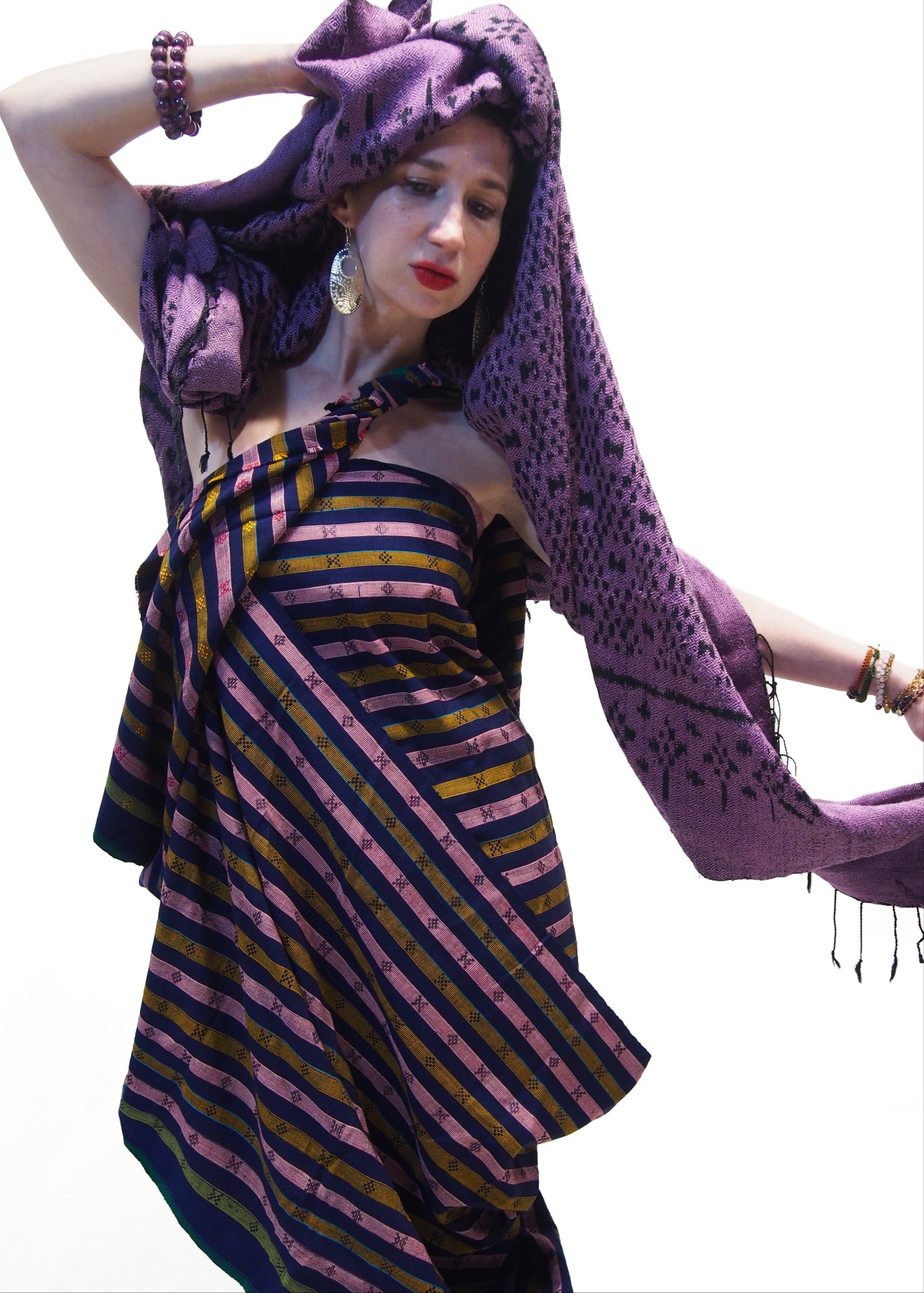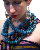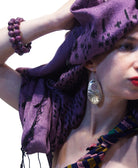 Ensemble 5: Handloomed Cotton Wrap/ Shawl from Lombok, Indonesia with Thai Sterling Silver Tribal Earrings and Naga Turquoise Glass Heirloom Bead Strands - Each Item Sold Separately