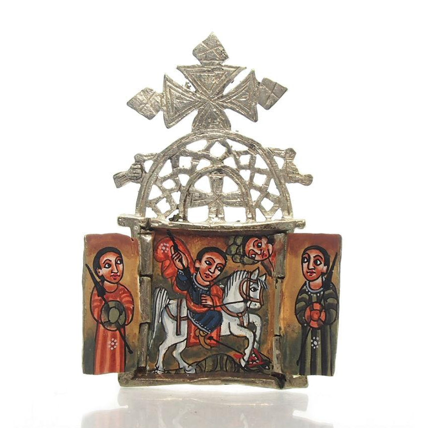 Ethiopian Processional Hand-Painted Icon Cross, M4