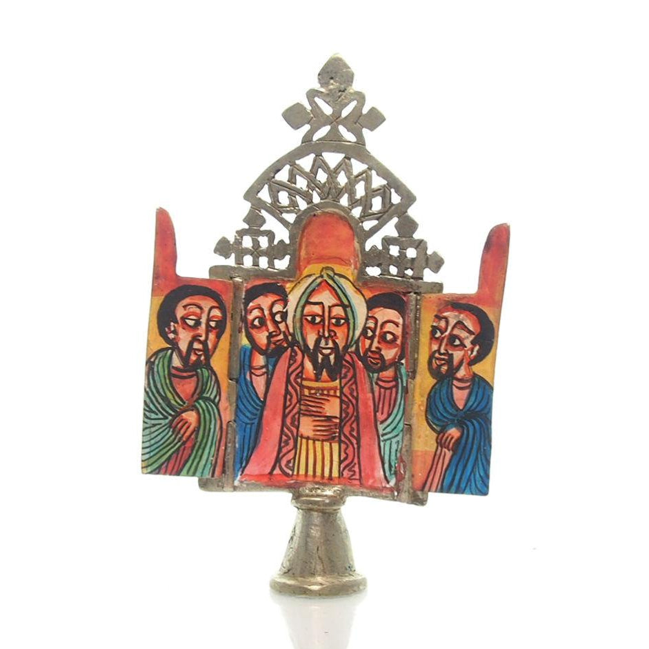 Ethiopian Processional Hand-Painted Icon Cross, M7
