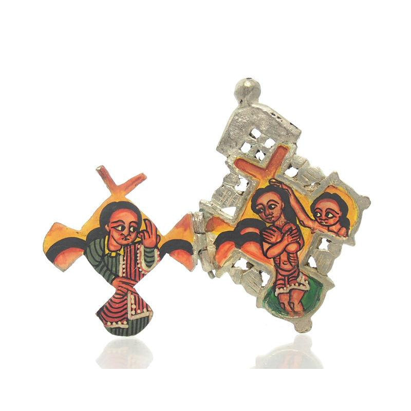 Ethiopian Processional Hand-Painted Icon Cross, Small 2