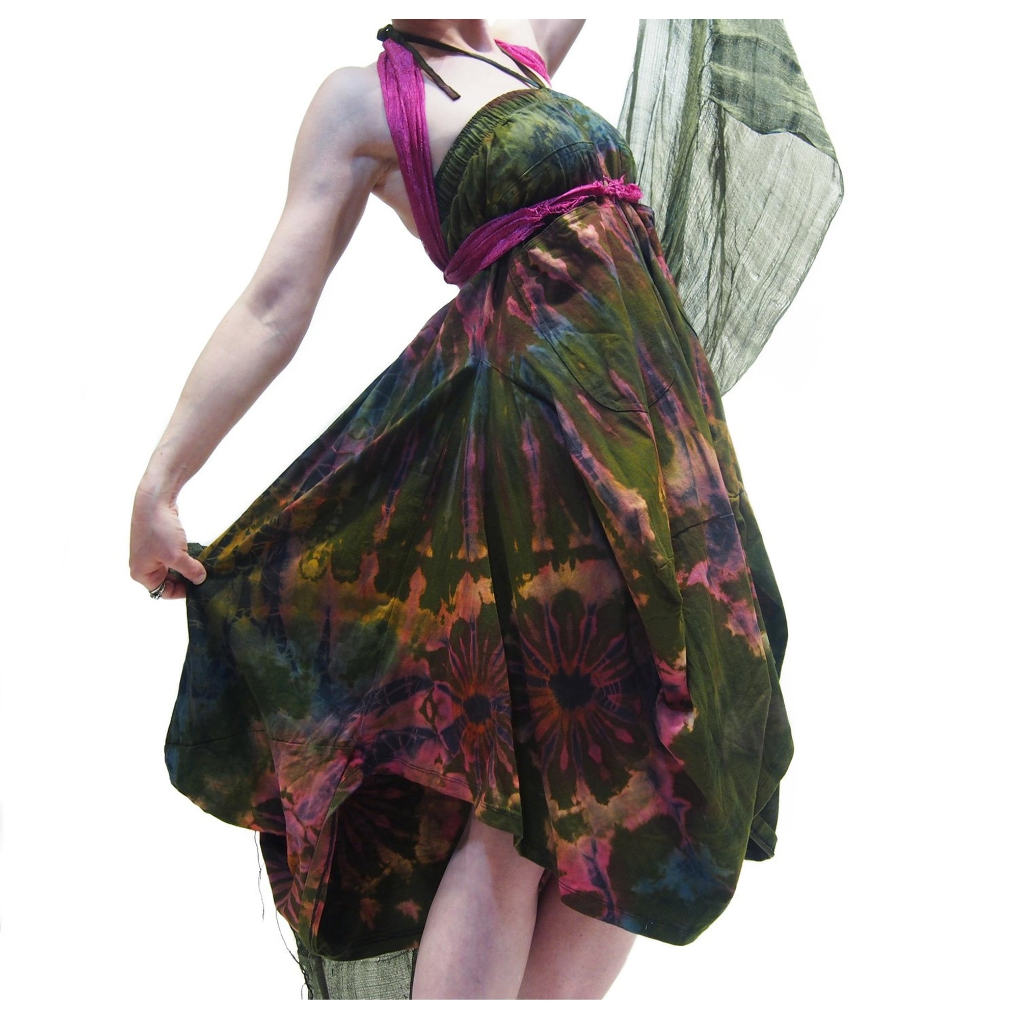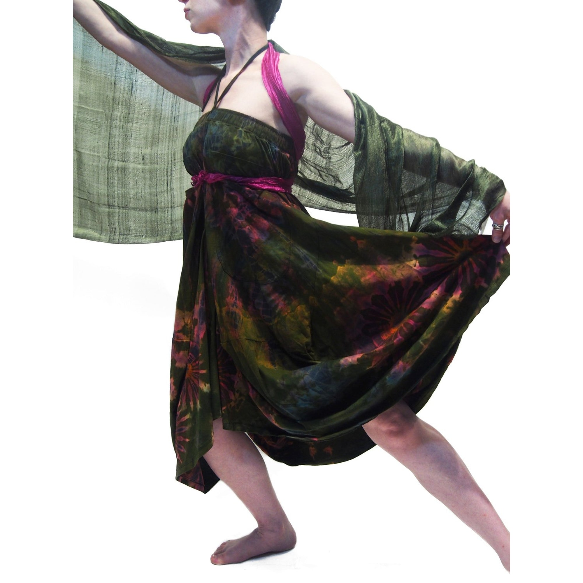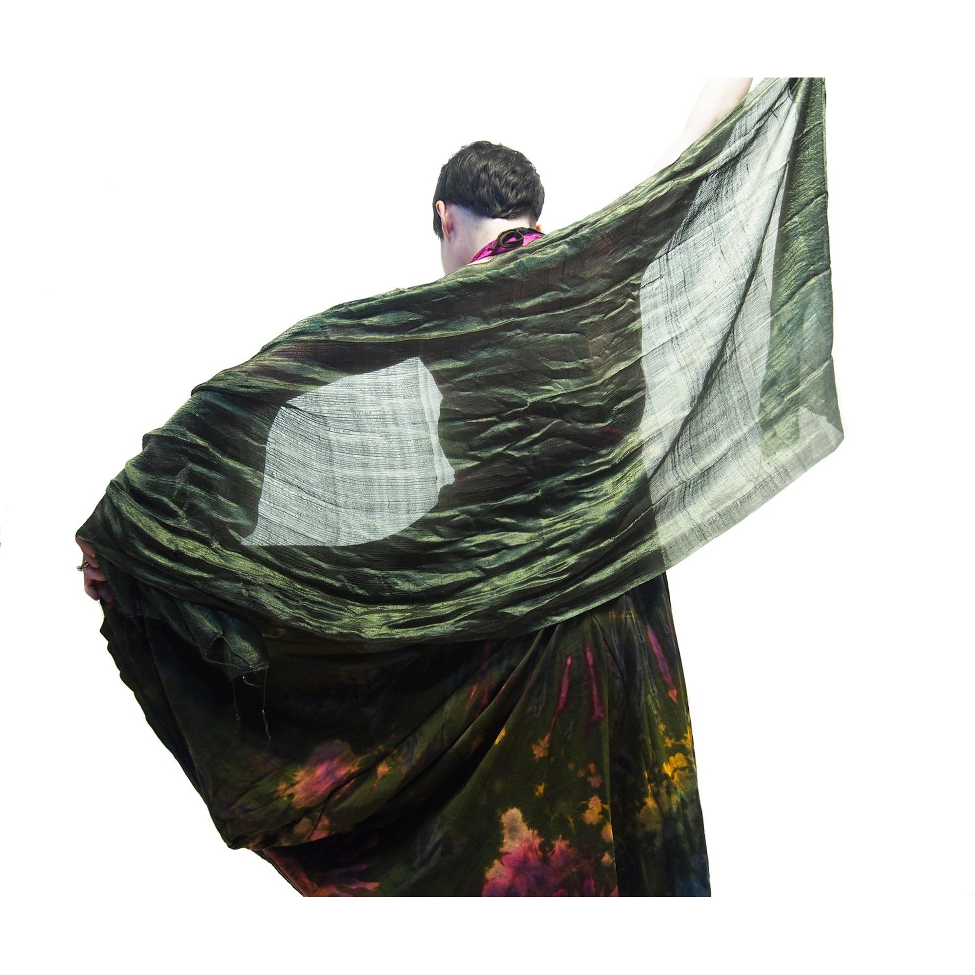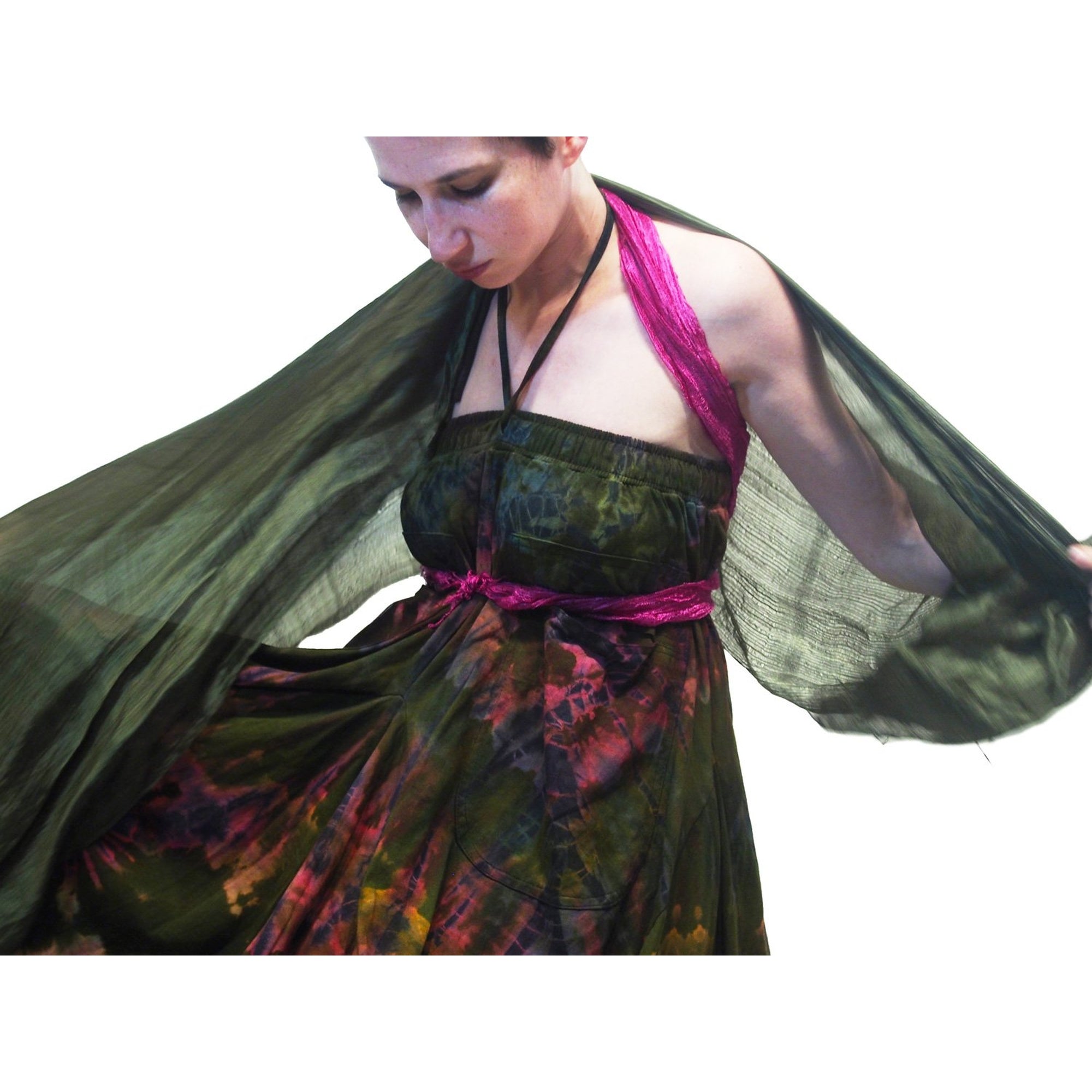 Tie Dye Parachute Skirt Green (worn as dress) With Thai 100% Silk Shawl 11 EACH PIECE SOLD SEPARATELY