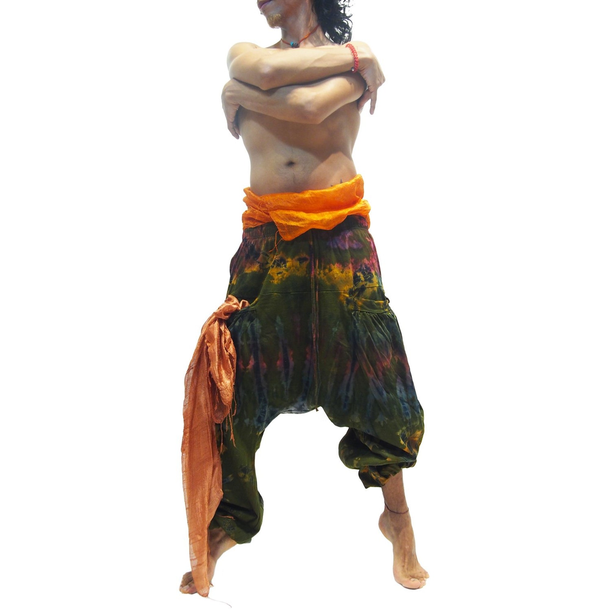 Tie Dye Harem Pant Green Sunset With Thai 100% Silk Shawls 18 EACH PIECE SOLD SEPARATELY