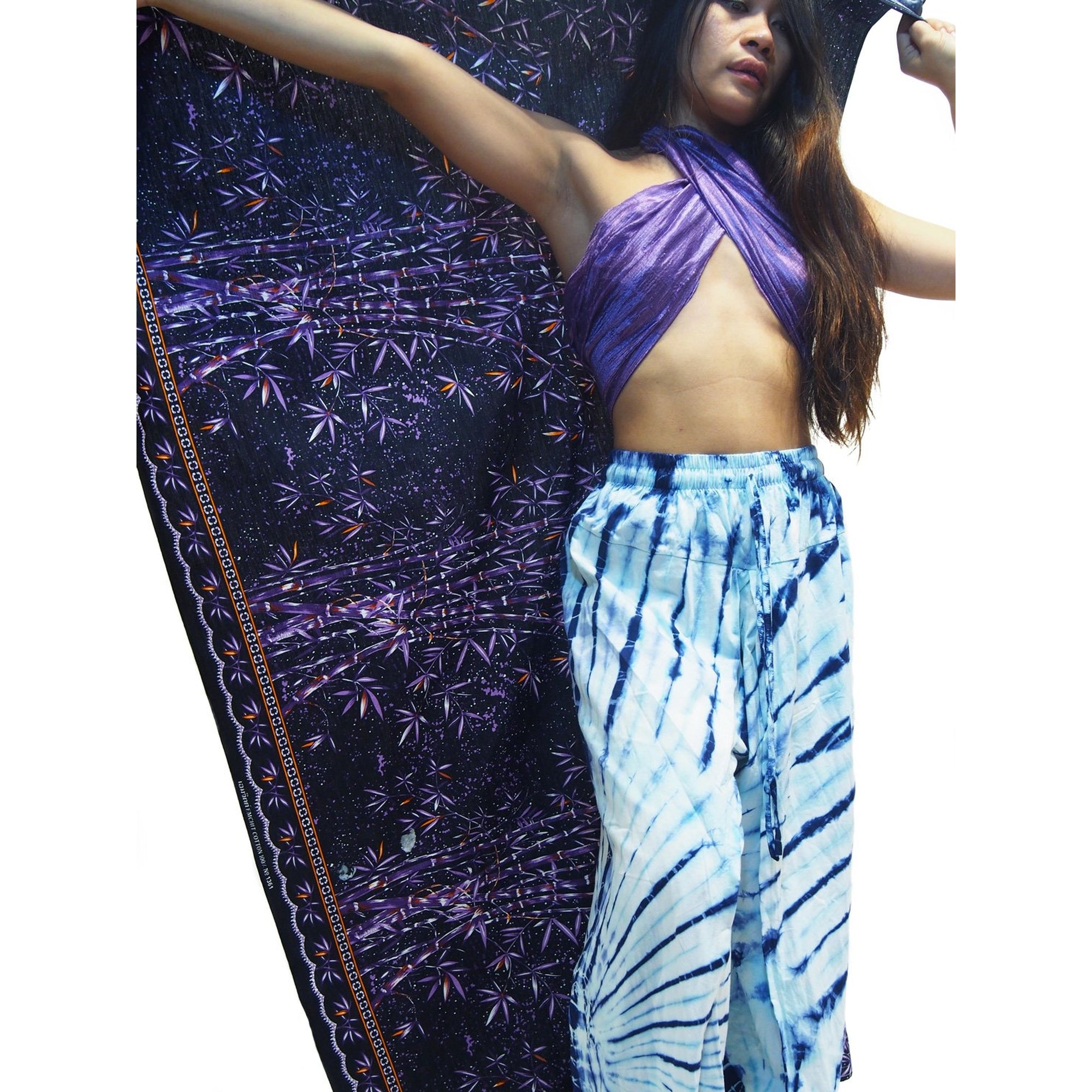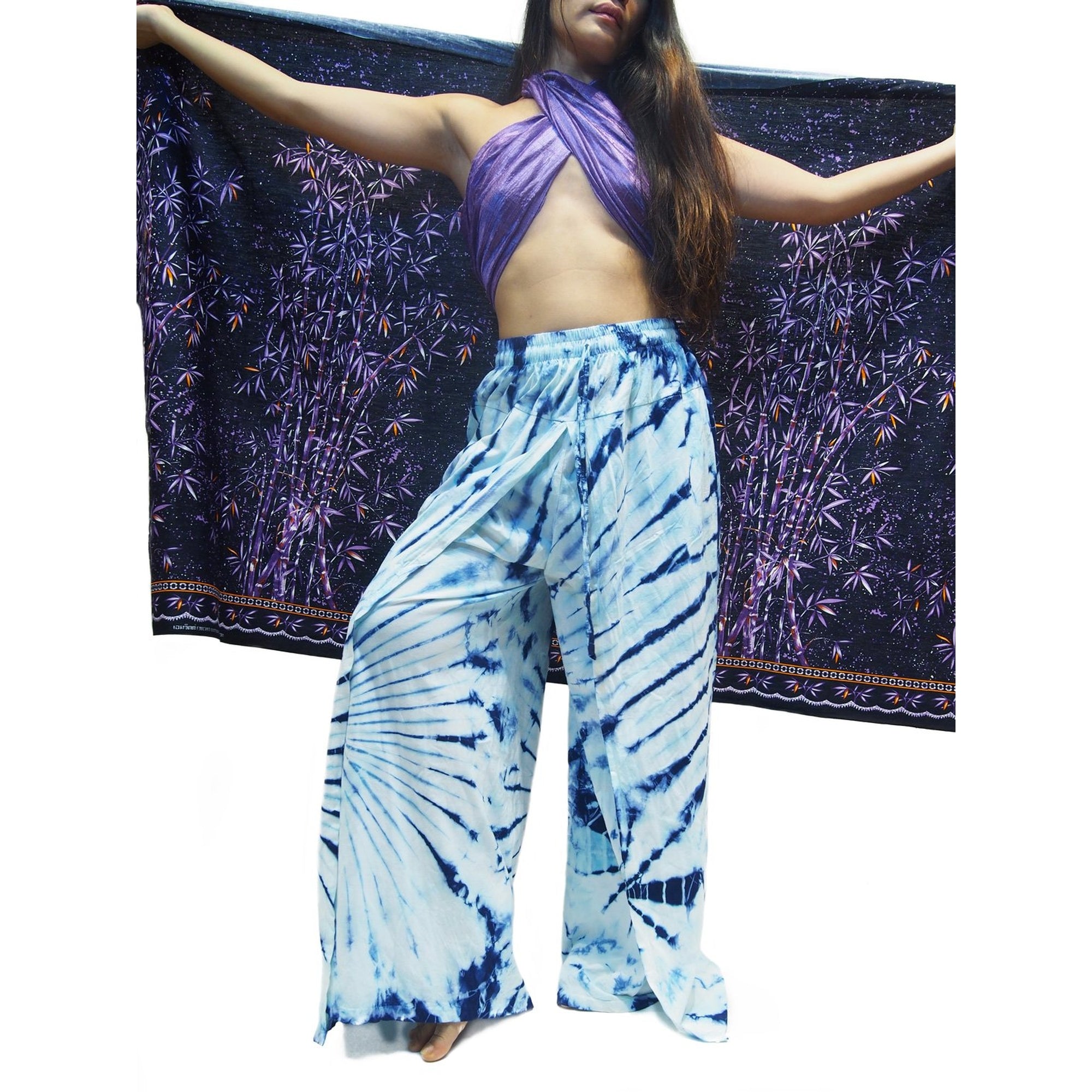 Tie Dye Open-Leg Pant Blue/White With Bali Indonesia Printed Sarong And Thai 100% Silk Scarf 20 EACH PIECE SOLD SEPARATELY