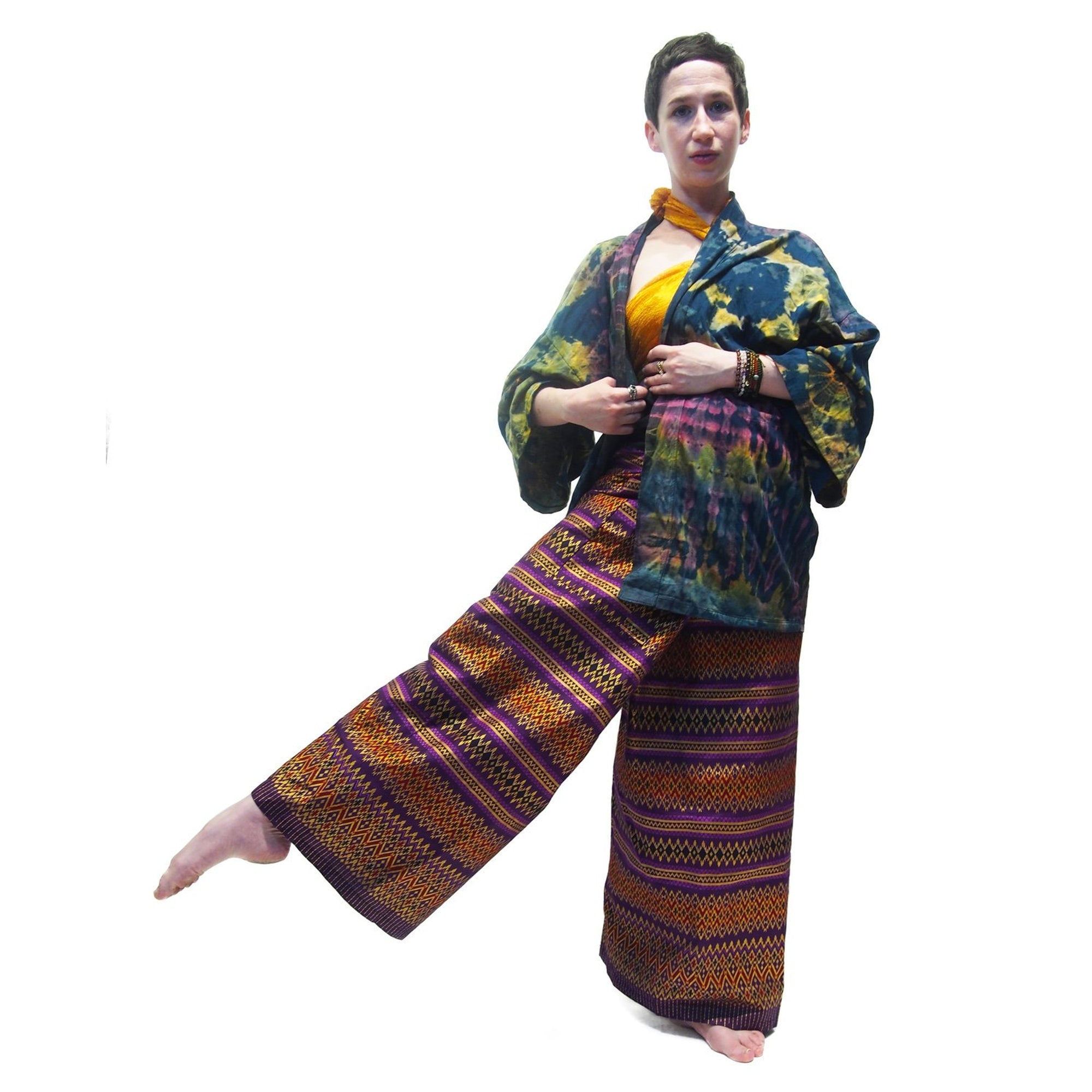 Tie Dye Kimono-Style Jacket Teal With Thai Printed Fisherman Pant 4 EACH PIECE SOLD SEPARATELY
