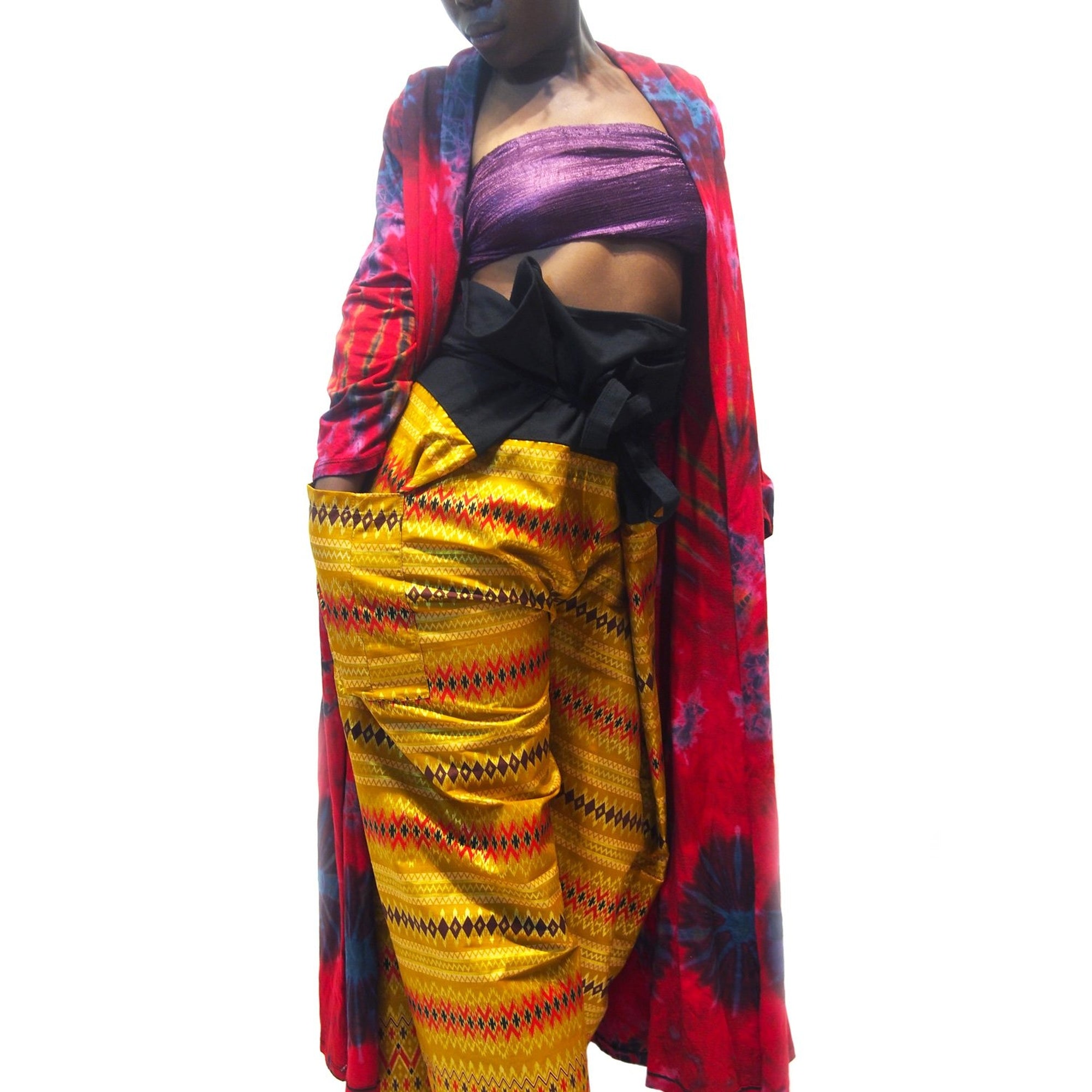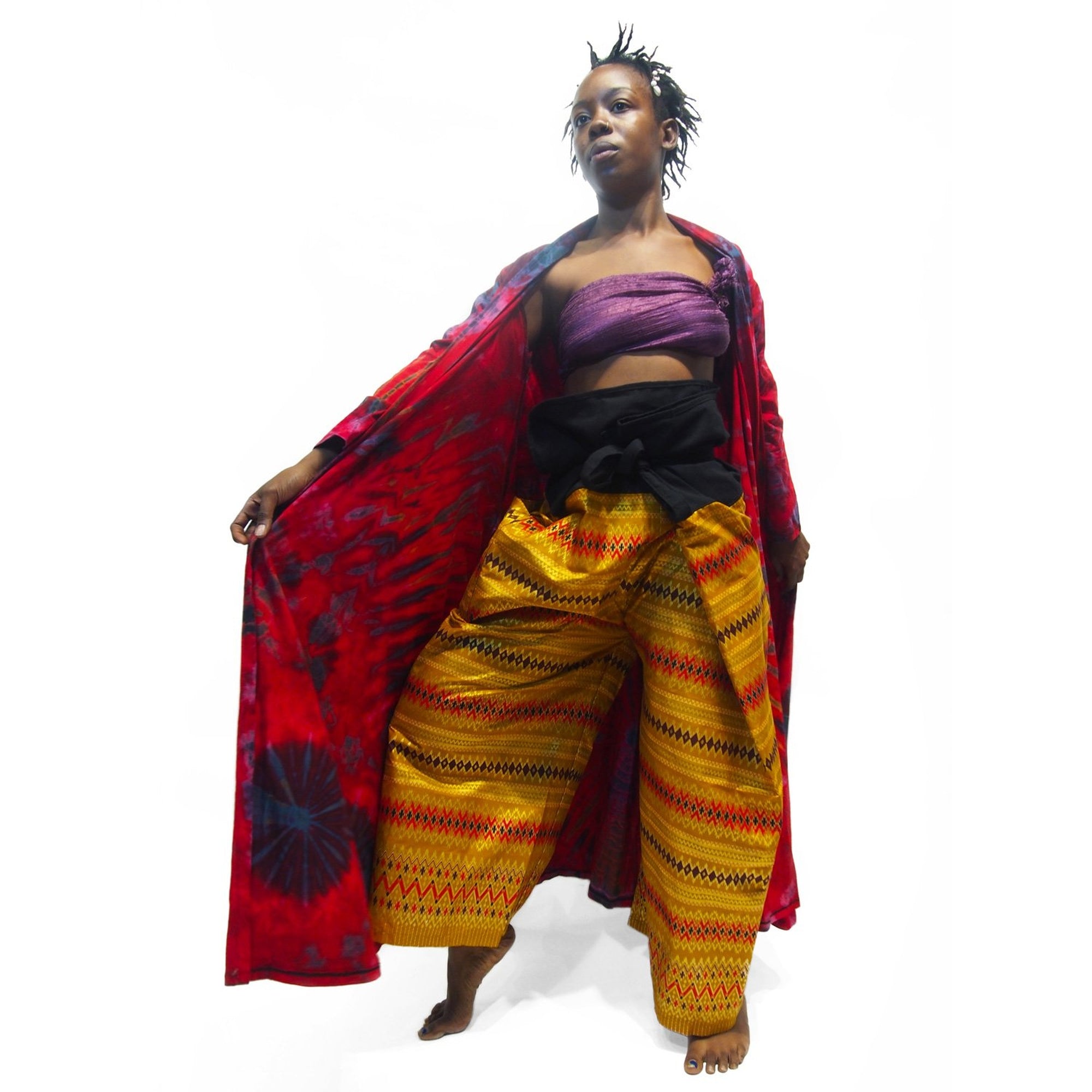 Tie Dye Kimono-Style Long Jacket Red With Thai Printed Fisherman Pant 5 EACH PIECE SOLD SEPARATELY