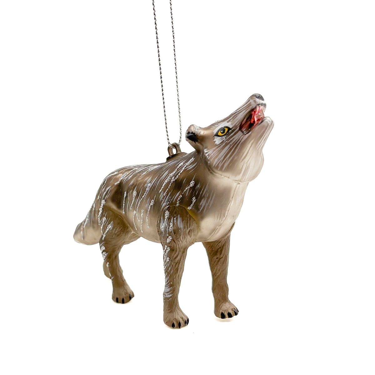 Glass Gray Wolf Ornaments