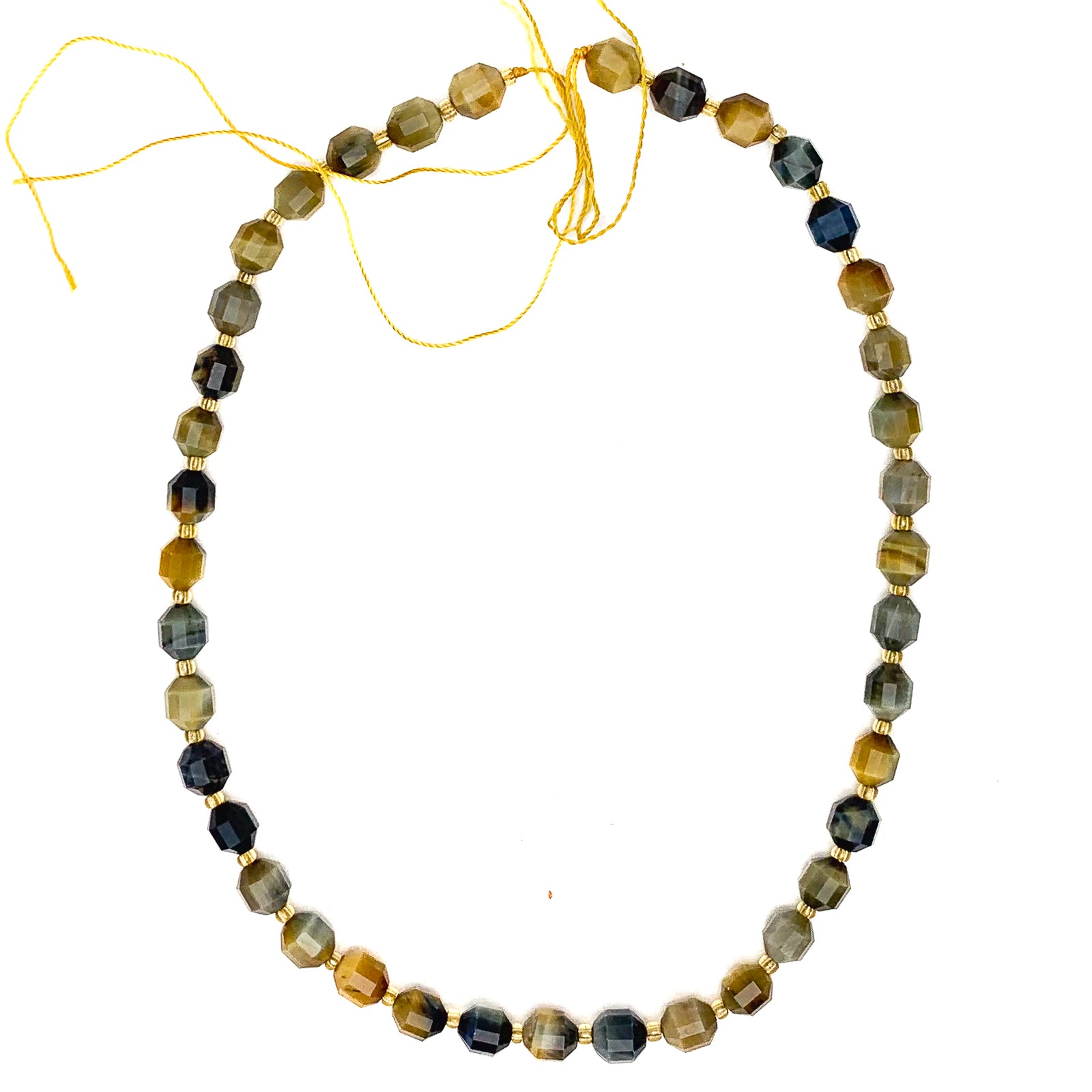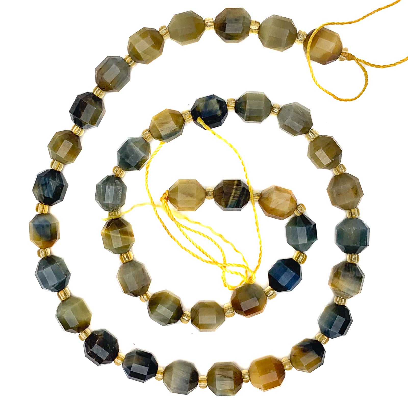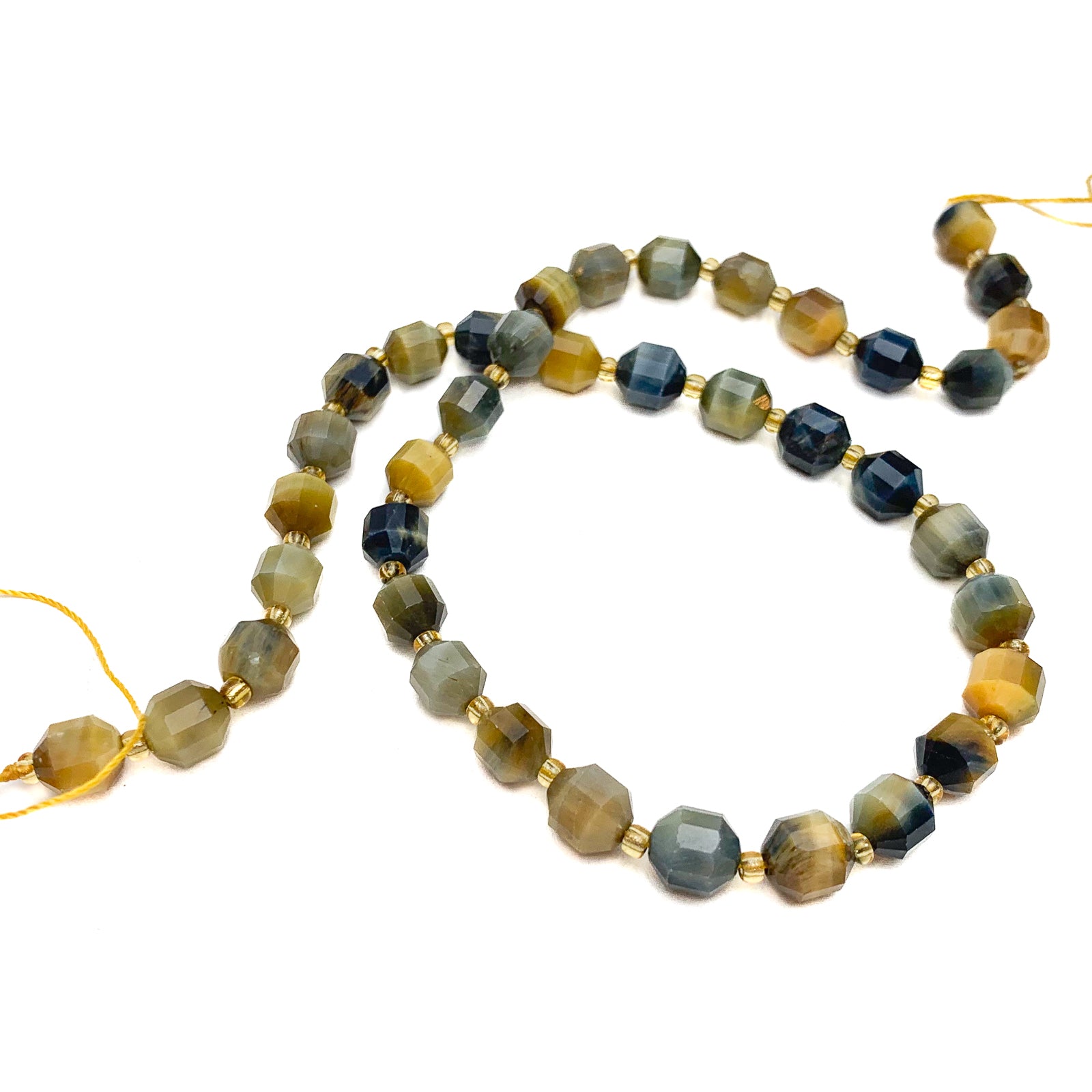 Golden / Blue Tigers Eye 7mm Faceted Drums Bead Strand