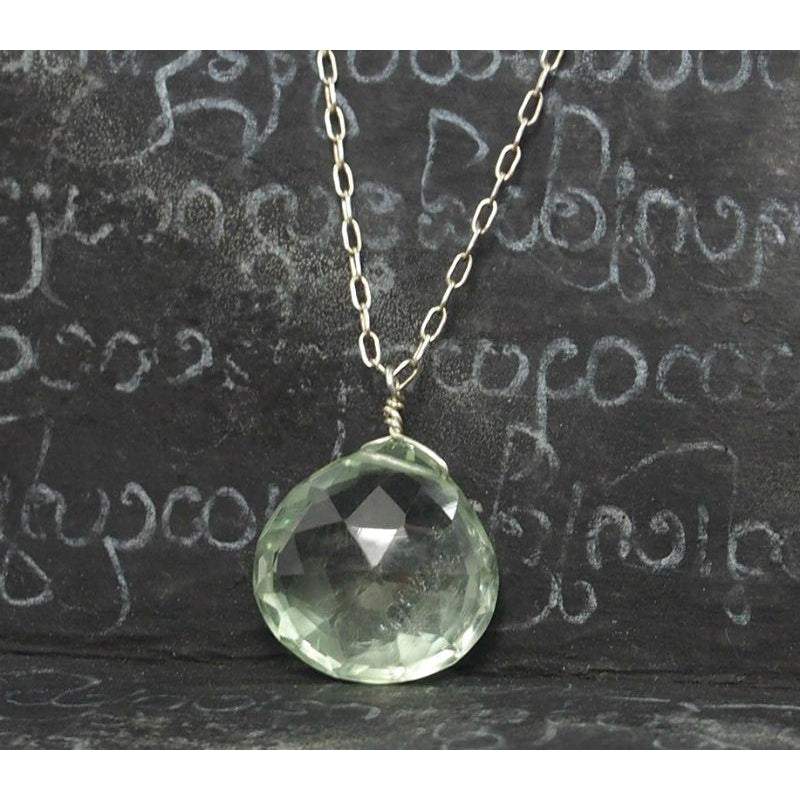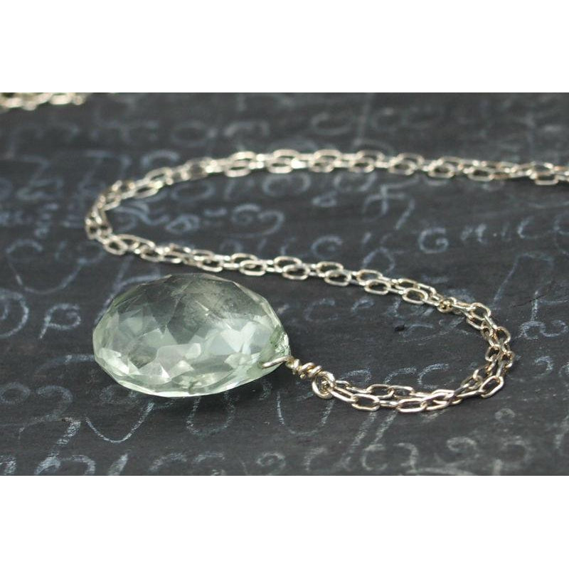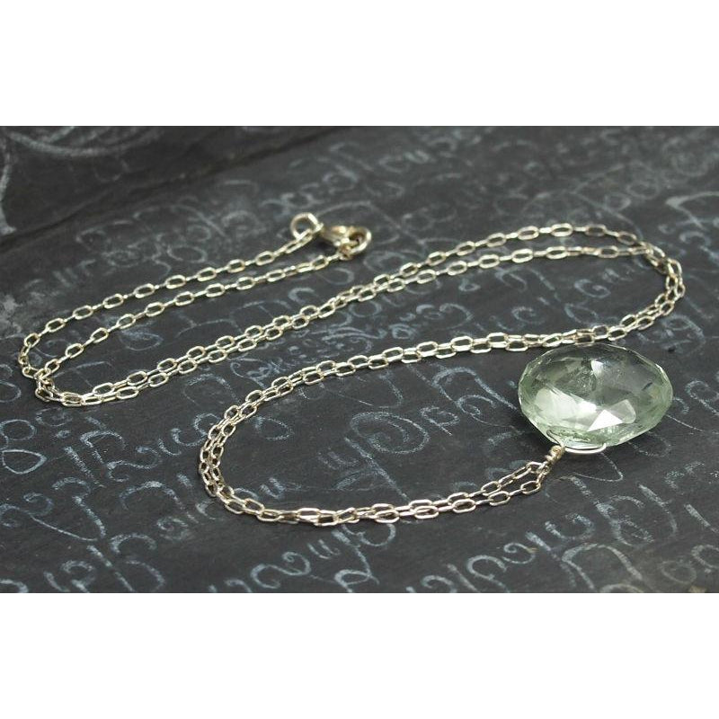 Green Amethyst On Sterling Silver Chain With Sterling Silver Spring Clasp