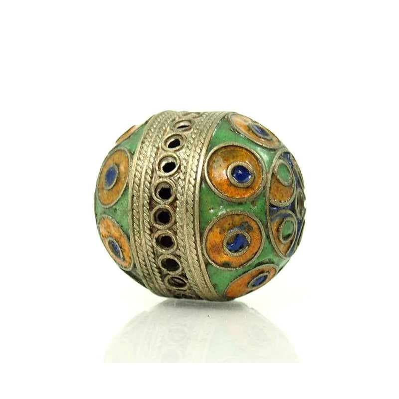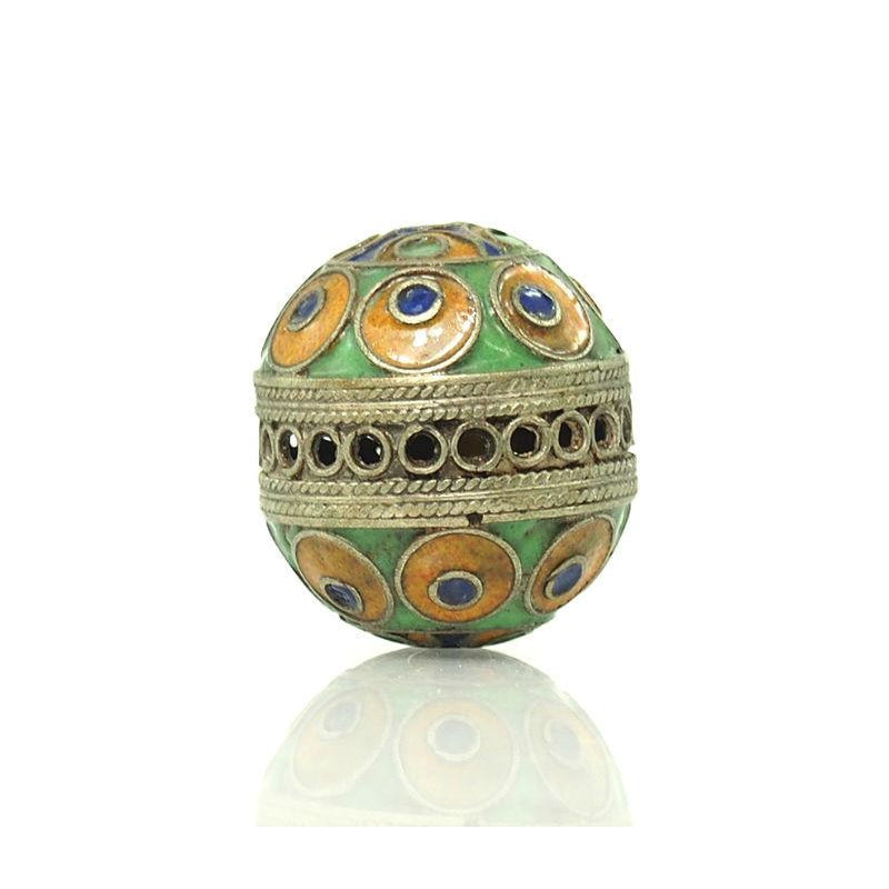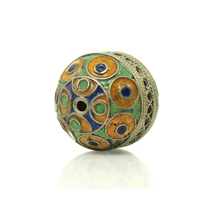 Hand Cast Metal Bead with Enamel Inlay 1