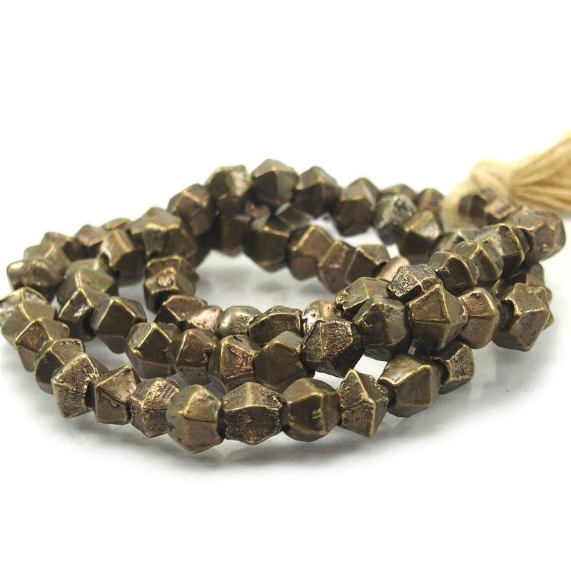 Indian Antique Hexagonal Brass Bicones Small Bead Strand / Necklace