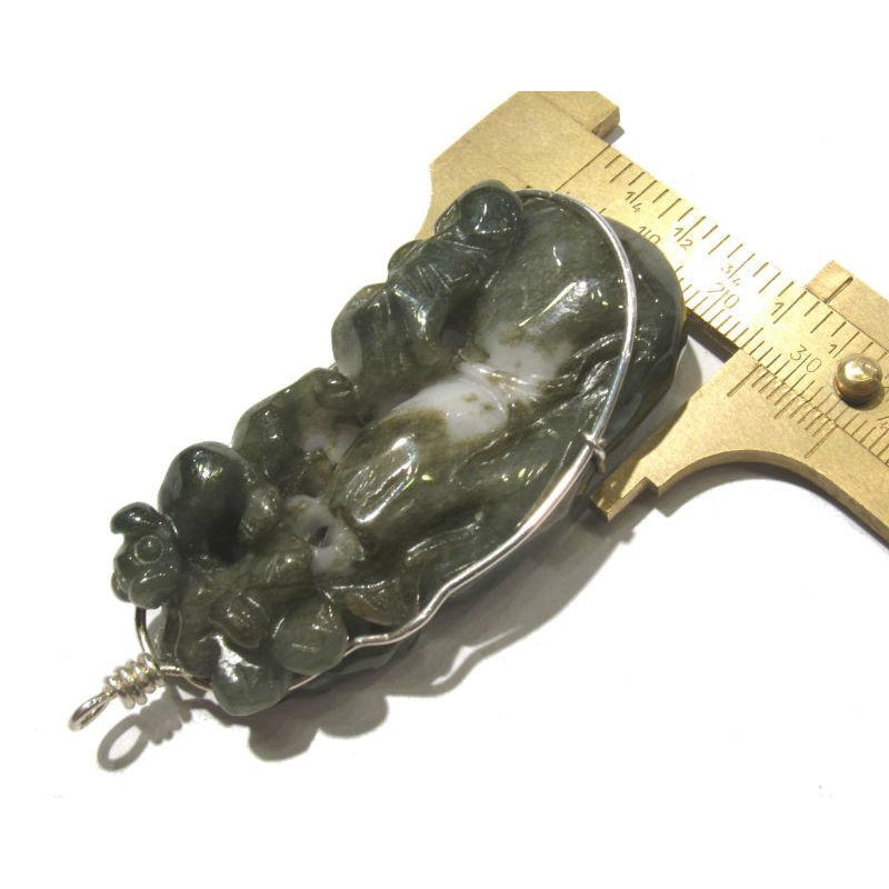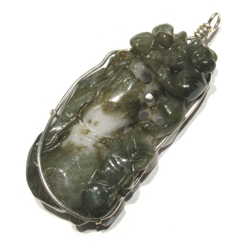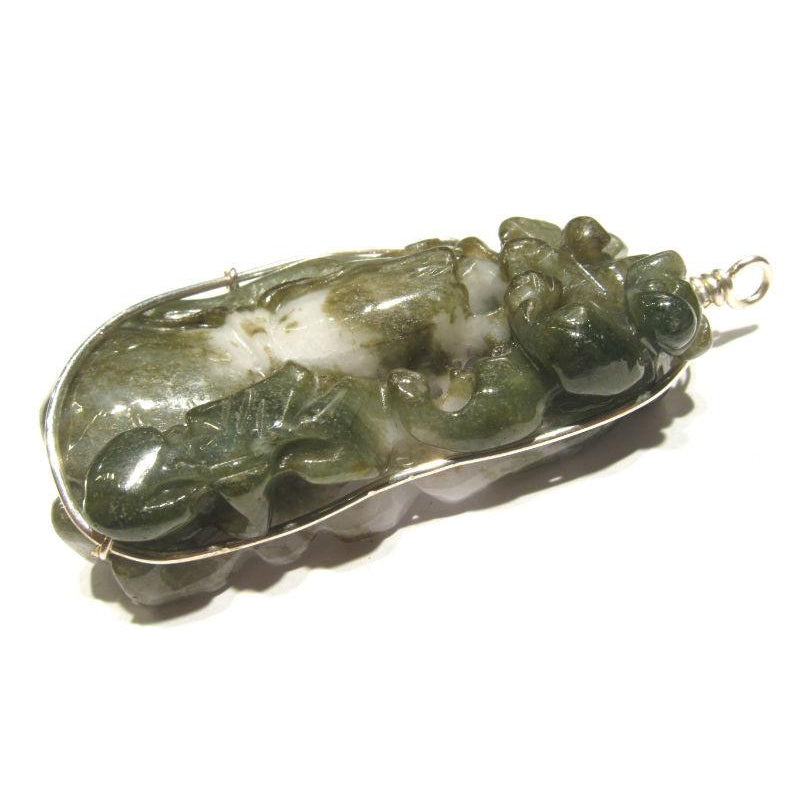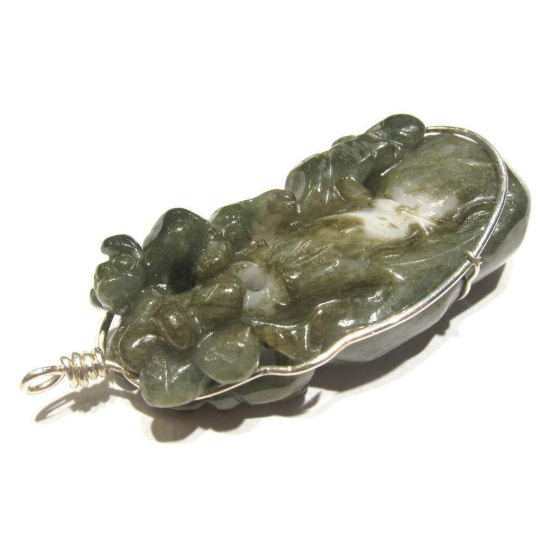 Jade Bottle Gourd with Lingzhi Fungus Wire Wrapped Pendant- Large