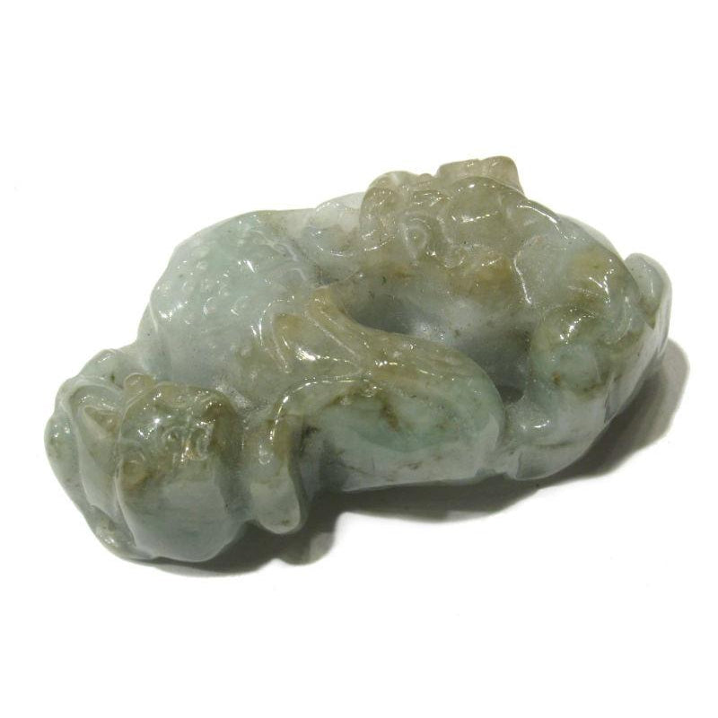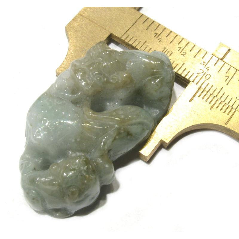Jade Foo Dog Mother and Child with Corn Pendant