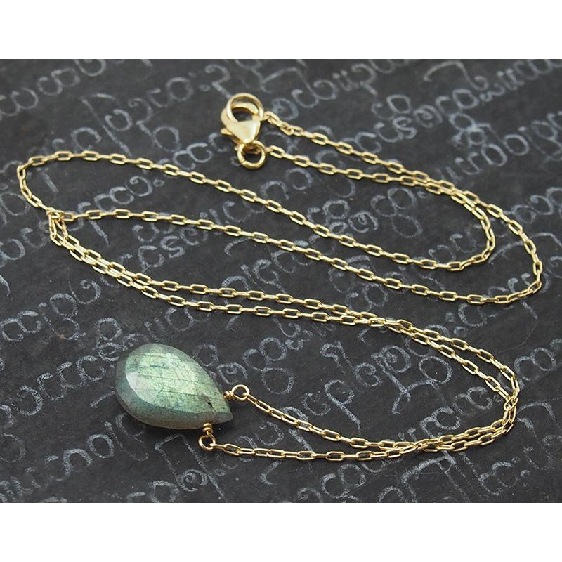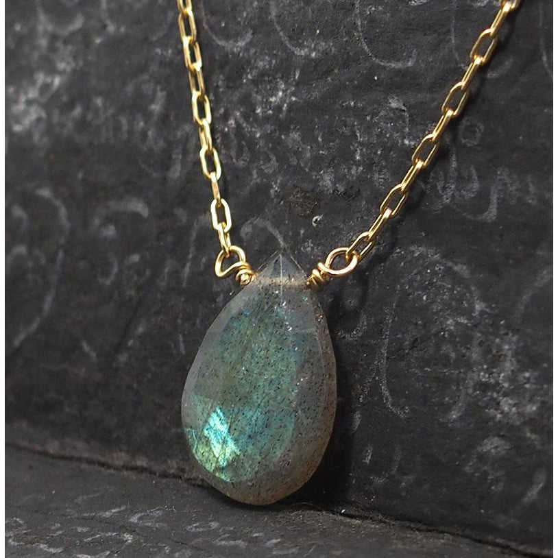 Labradorite Necklace On Gold Filled Chain With Sterling Gold Filled Trigger Clasp
