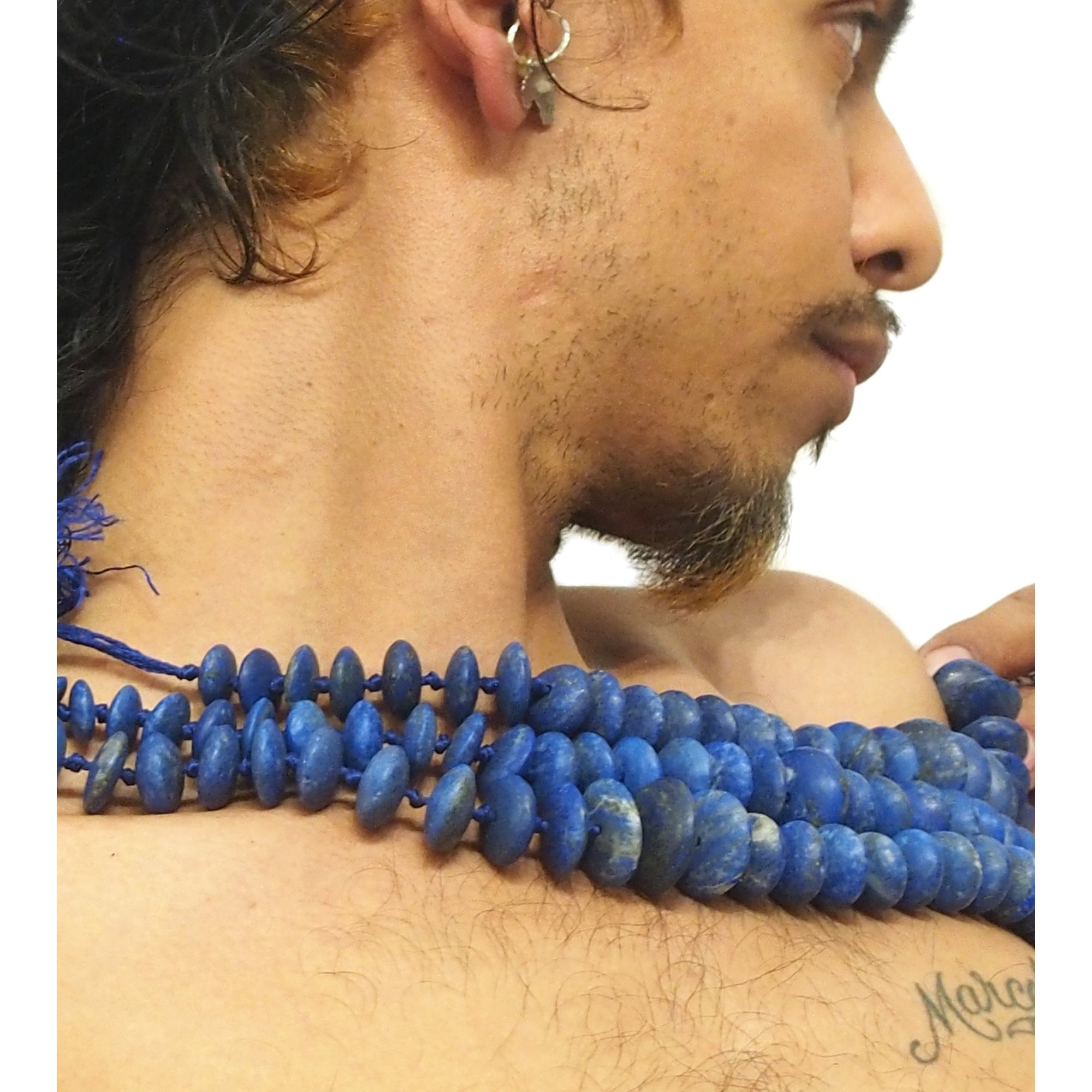 Graduated Lapis Lazuli Matte Knotted Disc Strand