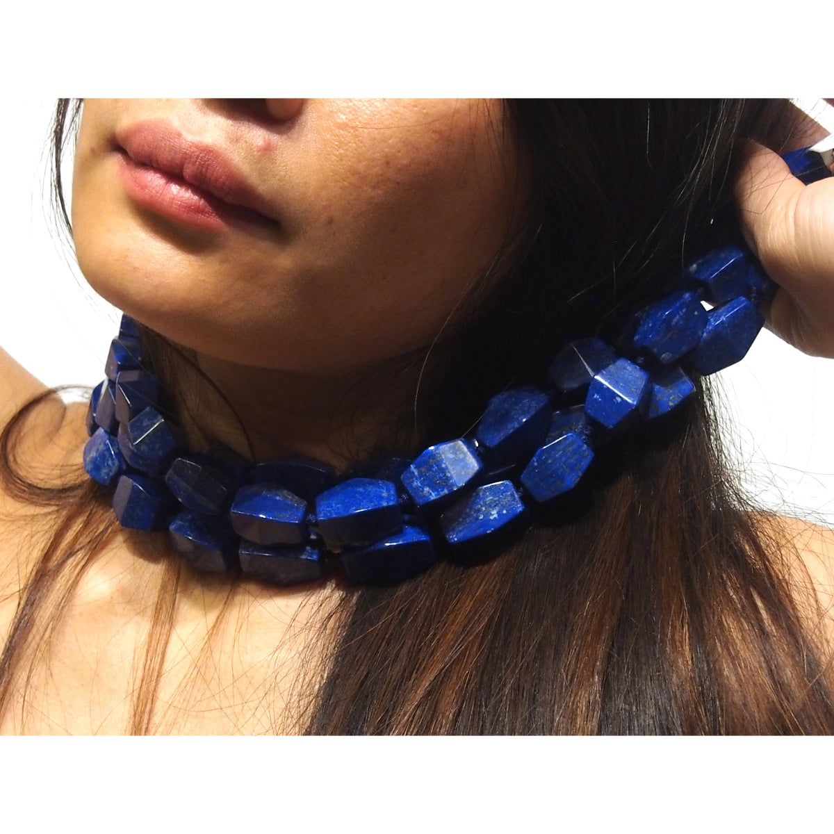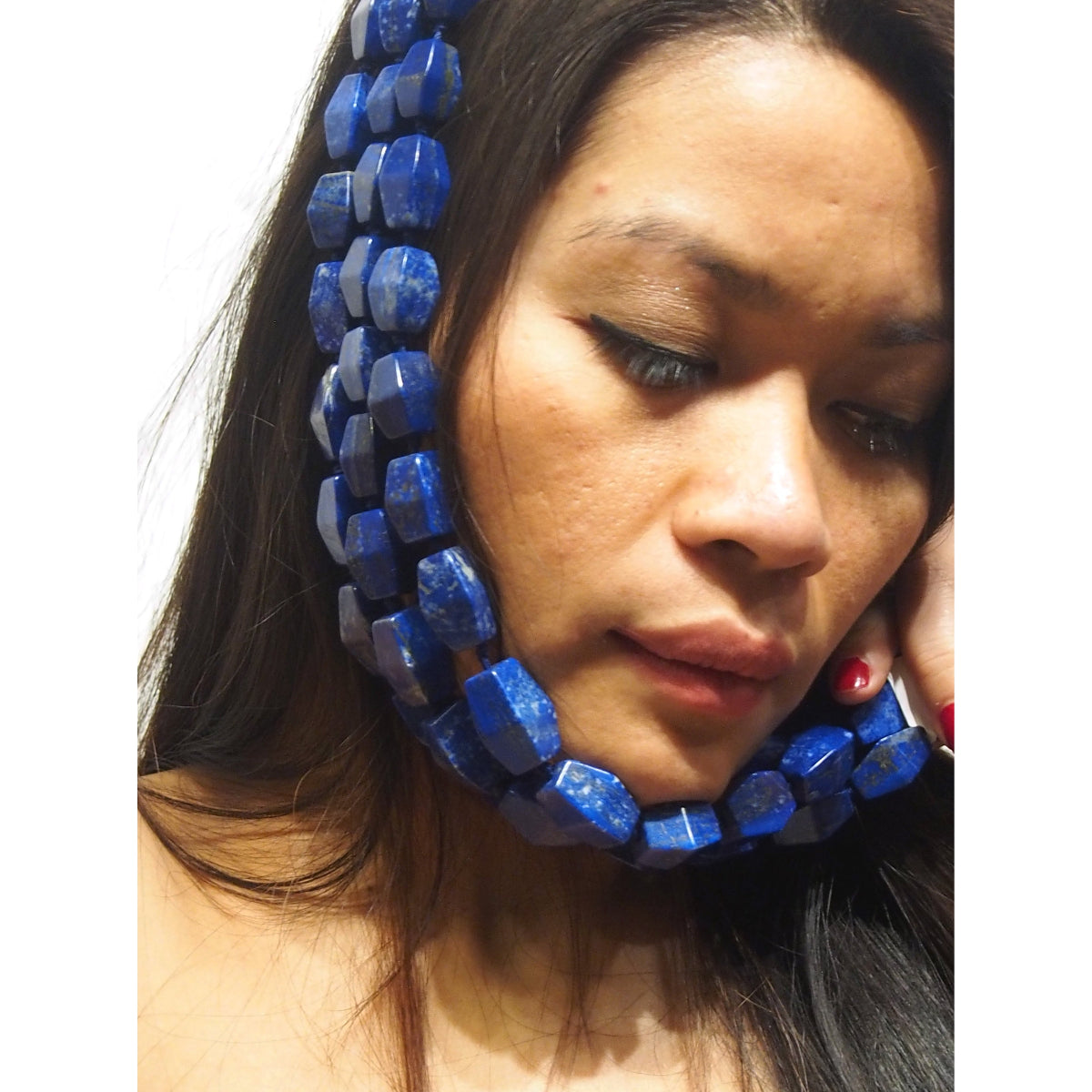 • Lapis has been used for more than 6000 years for fine jewelry and ornamental objects. Its name is from "lapis" the Latin word for stone,  and "azul," the word commonly meaning blue. Lapis Lazuli is made up of 25 to 40 percent lazurite, plus several minerals (Sodalite, Hauyne, Calcite, and Pyrite) that influence color and its distribution. Lapis Lazuli is considered a semi-precious stone and is found throughout the Middle East, most specifically Egypt and Afghanistan. Because of its bright blue color, Lapis Lazuli was ground up to make paint and dye pigments. Prior to the 19th century, it was used as the pigment ultramarine in tempra, and oil paints. Ancient Egyptian nobility such as Cleopatra used finely ground lapis as eye shadow. Lapis Lazuli is commonly mentioned in folklore as the stone for truth and friendship, as well as emotional healing.