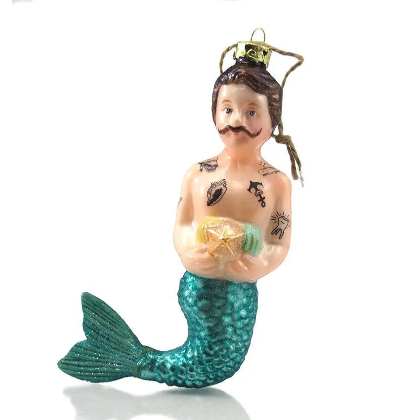 Large Tattooed Merman Glass Ornament
